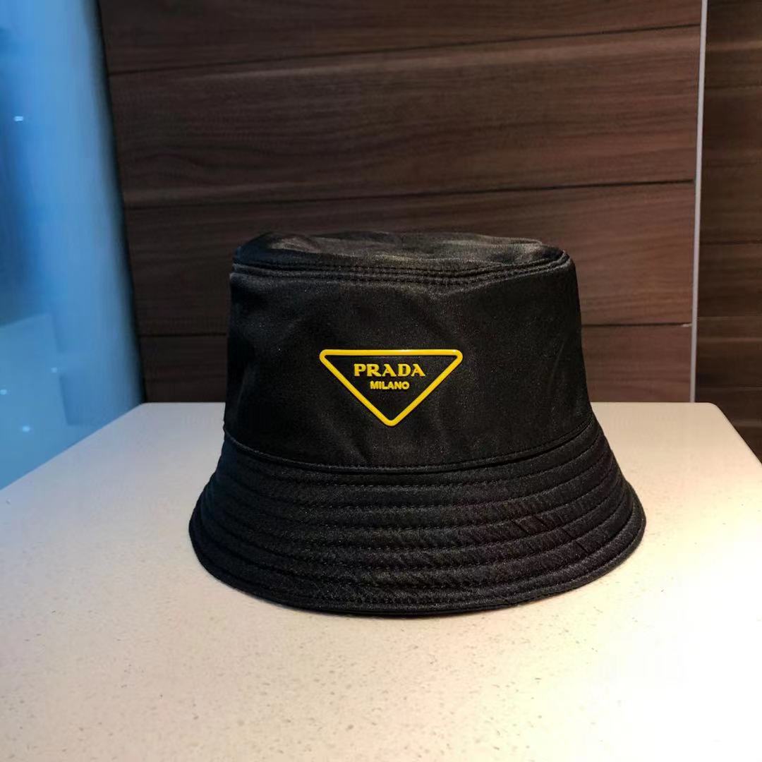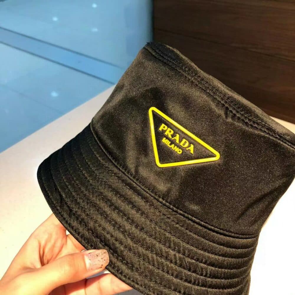 PRADA YELLOW LOGO BUCKET HAT
