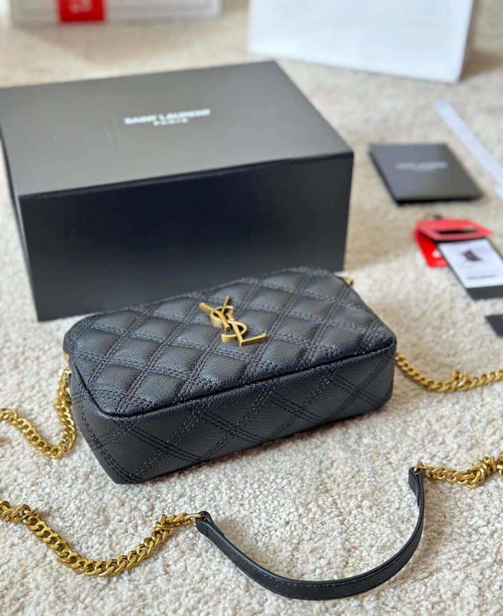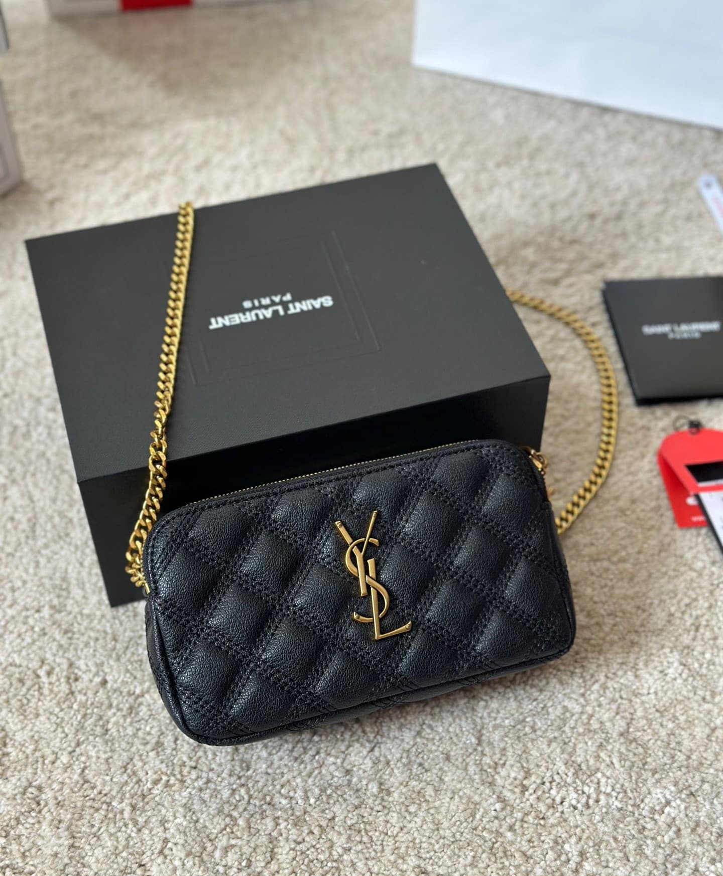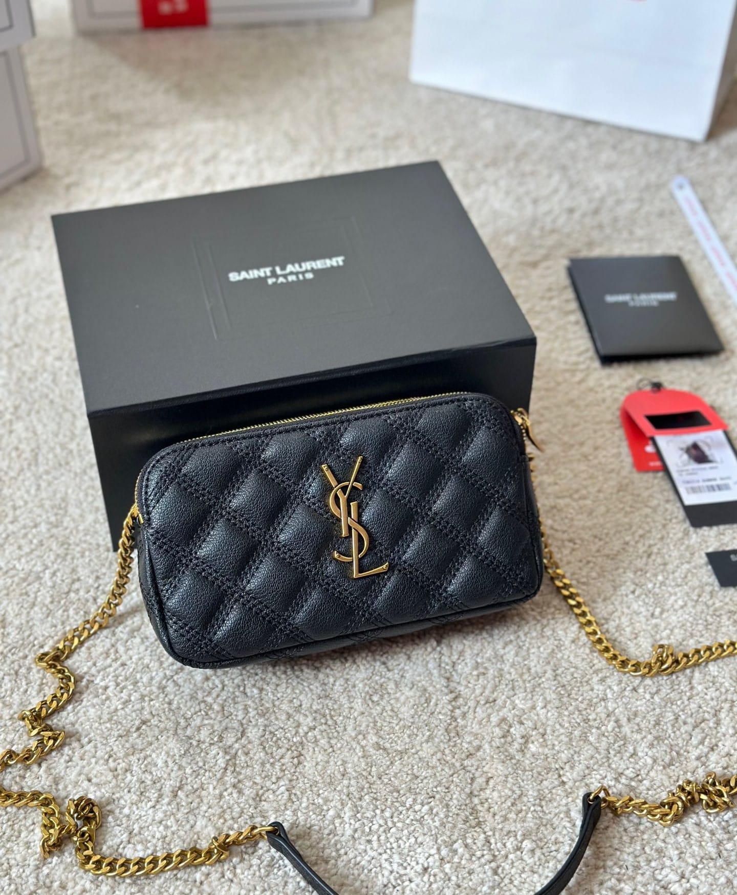 Saint Laurent //Becky Quilted Double Zip Pouch Bag //Black //20cm