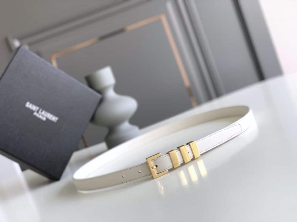 SAINT LAURENT BLACK 3 PASSANTS BELT WHITE AND GOLD 3146292551