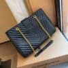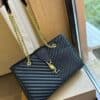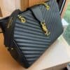 Saint Laurent Black Grain De Poudre Matelasse Chevron Monogram Shopping Bag / 35cm Gold Hardware