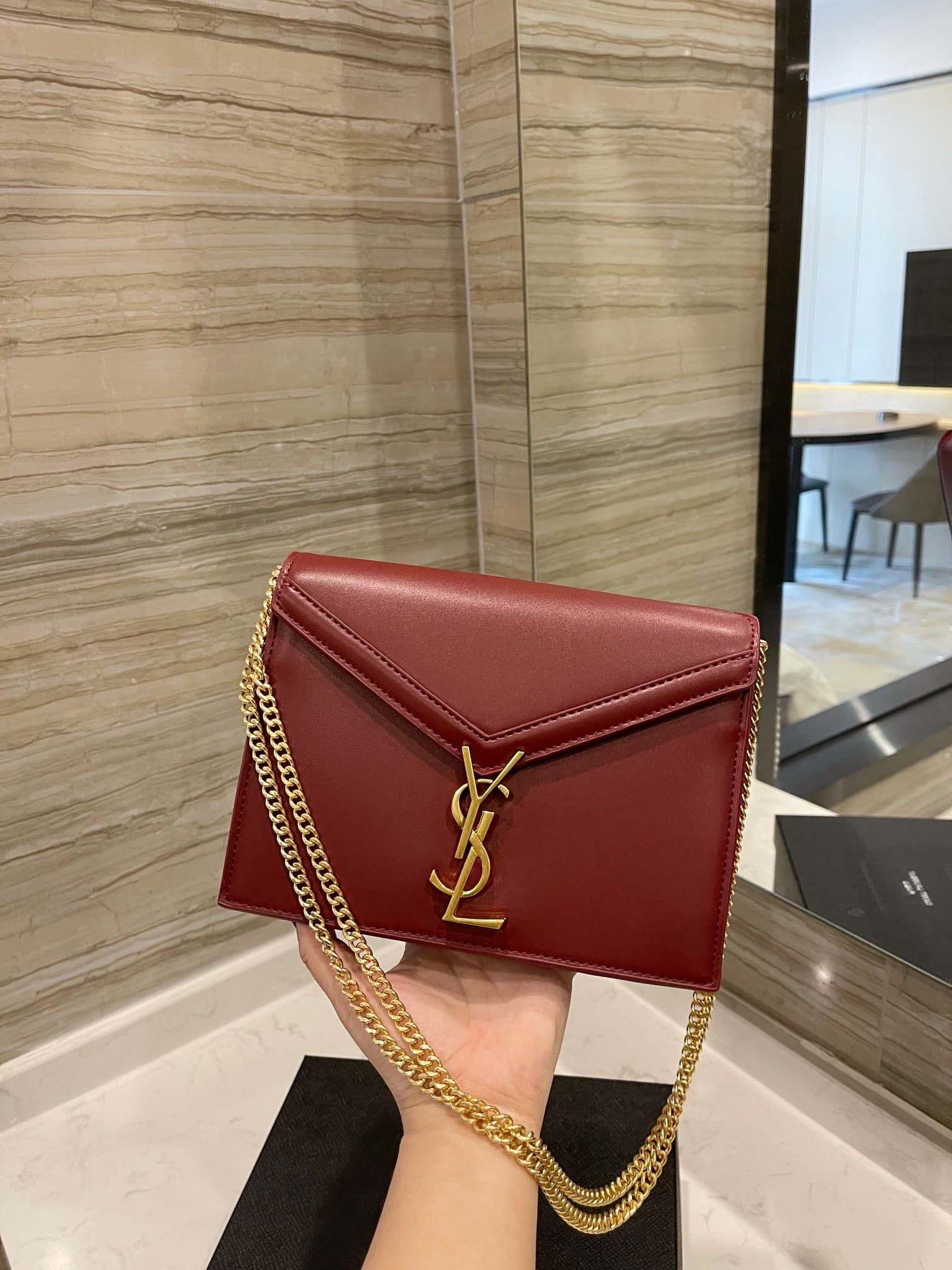 SAINT LAURENT CASSANDRA CHAIN CROSSBODY BAG WINE RED 582334/BOWAW6476