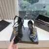 - Multi-Strap Sandals With A Stacked Stiletto Heel, Decorated With The Cassandre And Featuring An Adjustable Ankle Strap.