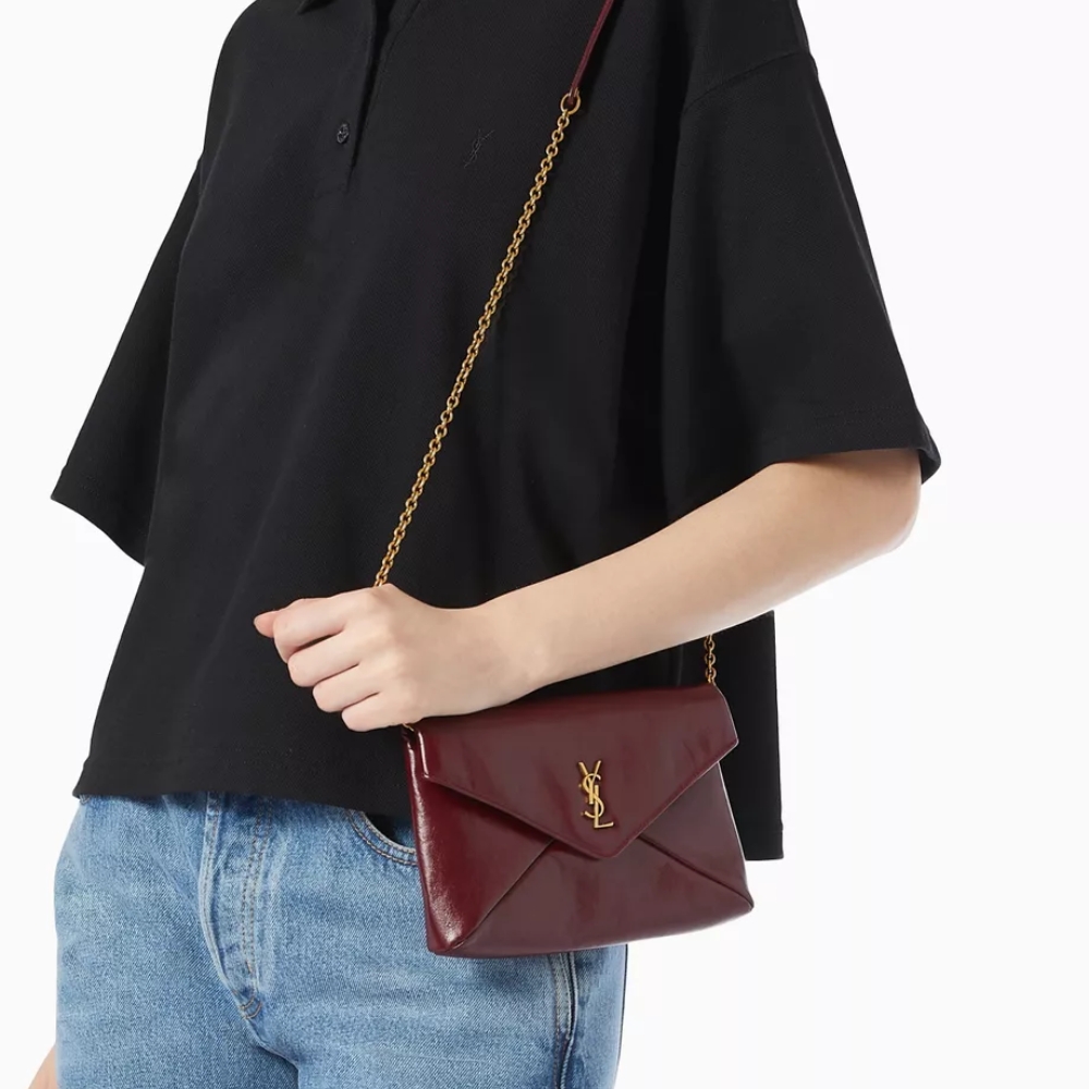 Saint Laurent Cassandre Chain Pouch In Shiny Leather Burgundy / 7.9 x 4.7 inches / Bronze-tone hardware / Chain Pouch / Daily Bags