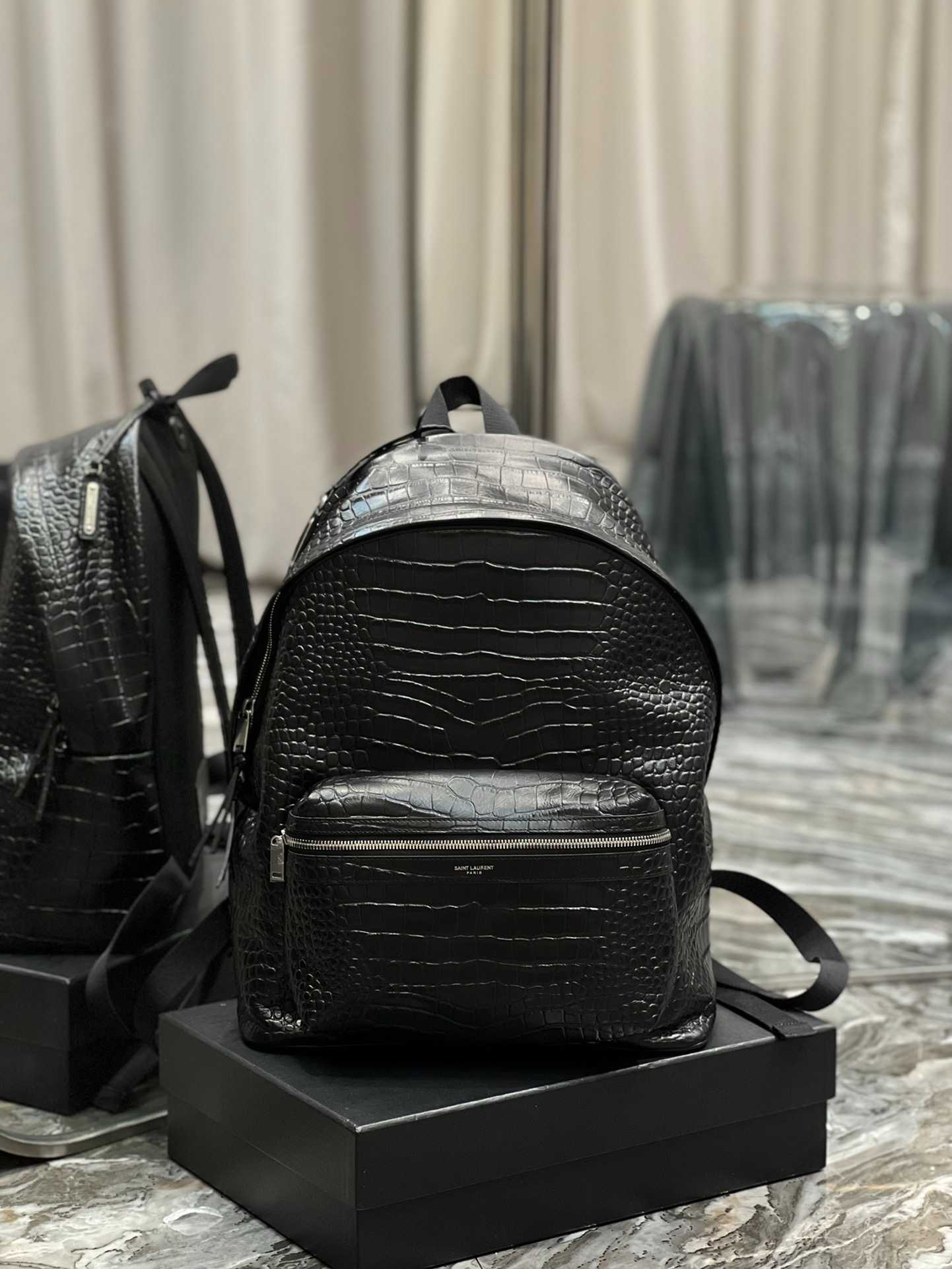 SAINT LAURENT CITY BACKPACK IN CROCODILE-EMBOSSED LEATHER BLACK 534967DZE2F1000 38CM