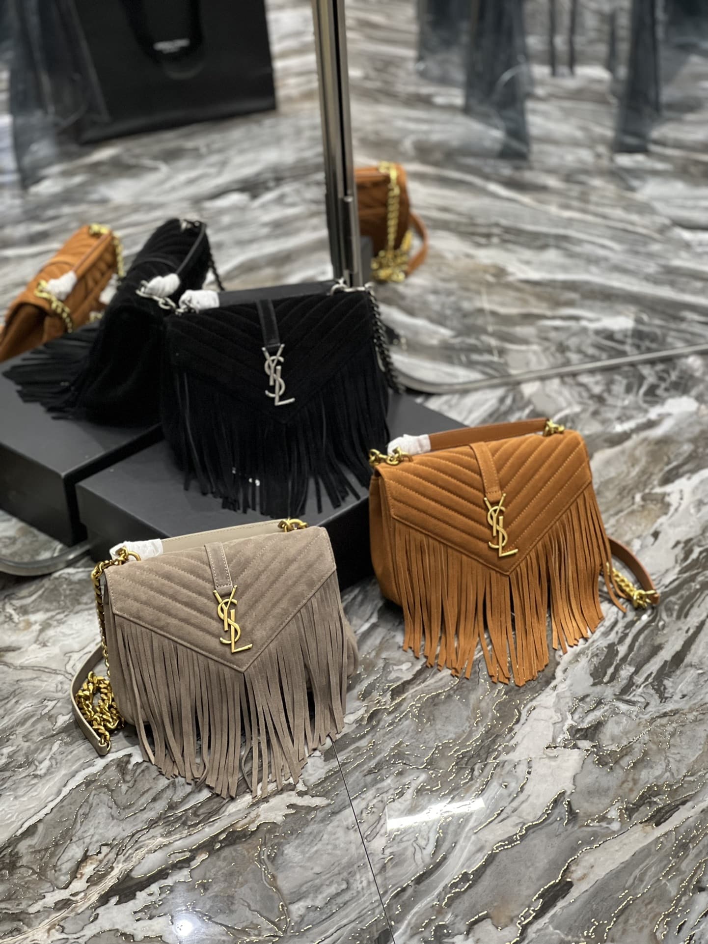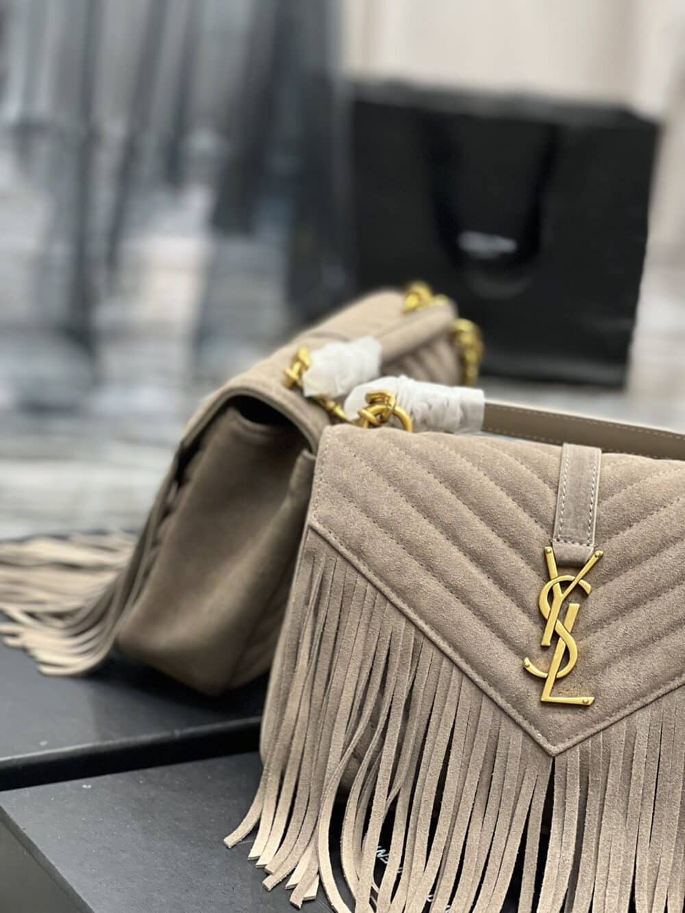 Saint Laurent College Medium Suede Shoulder Bag / Gray 24Cm