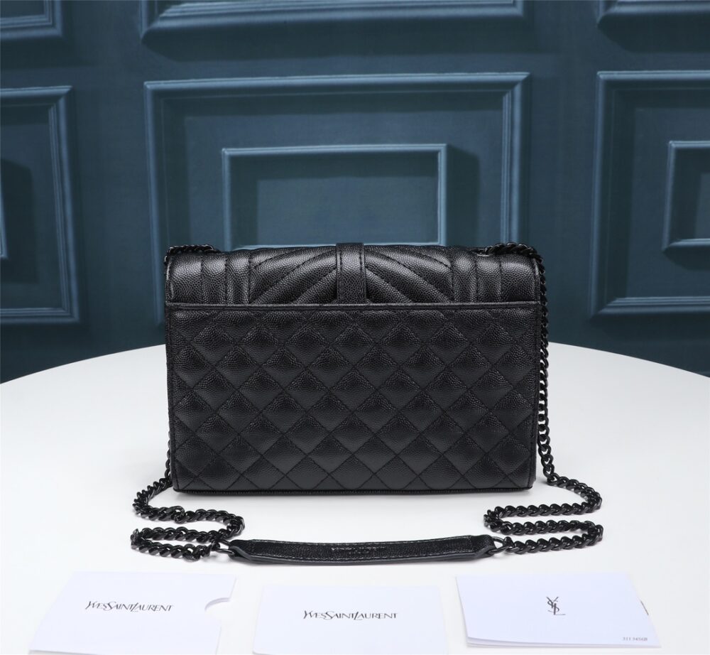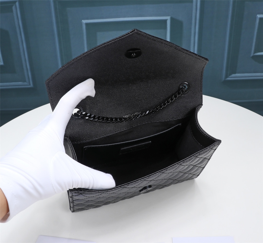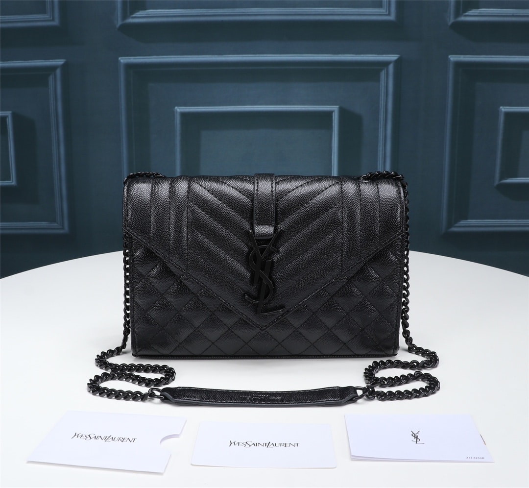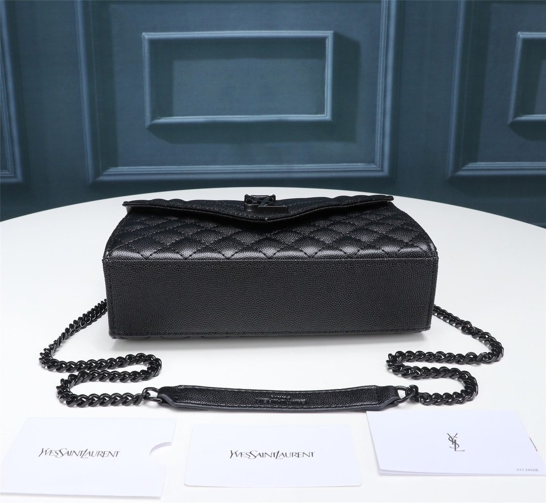 SAINT LAURENT ENVELOPE SMALL BAG IN MIX MATELASSÉ GRAIN DE POUDRE EMBOSSED BLACK NOIR 600195BOW981000