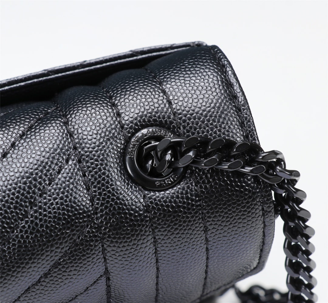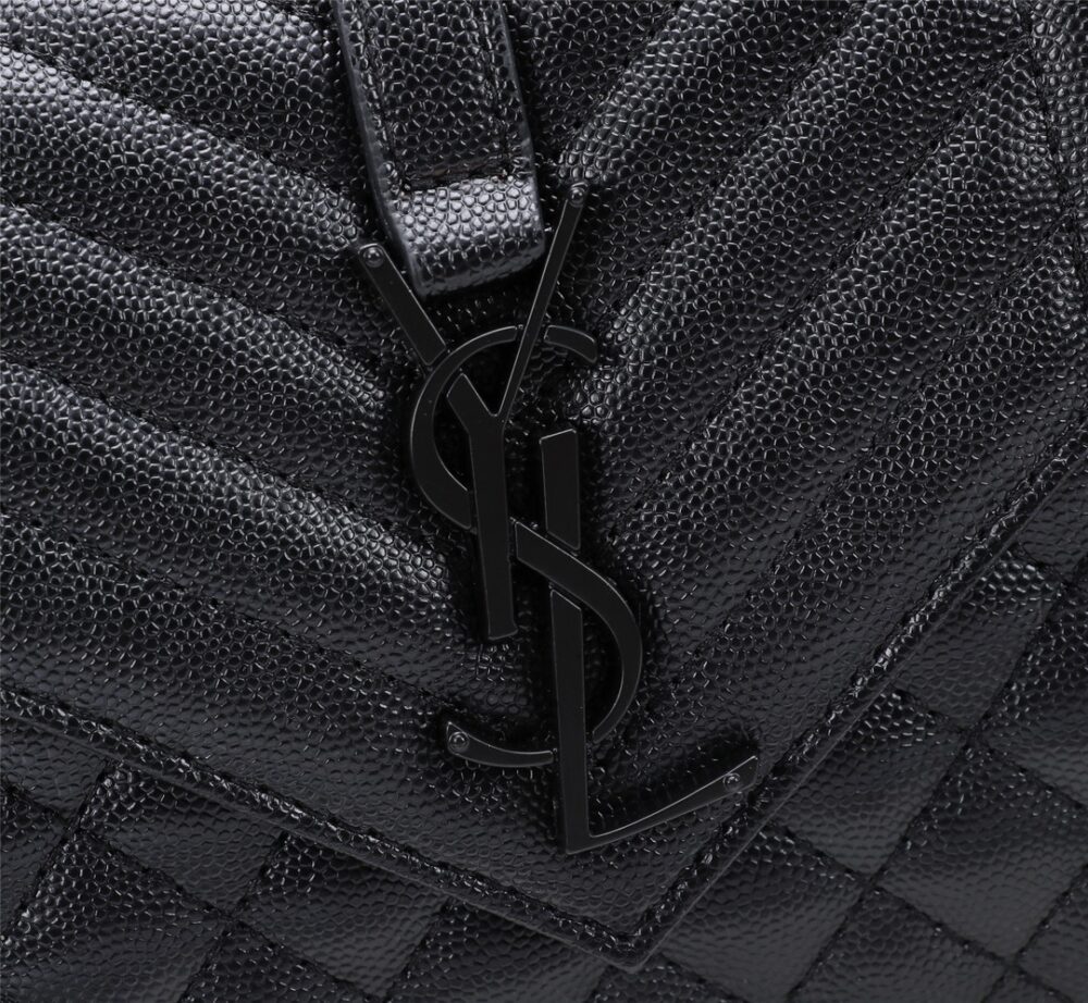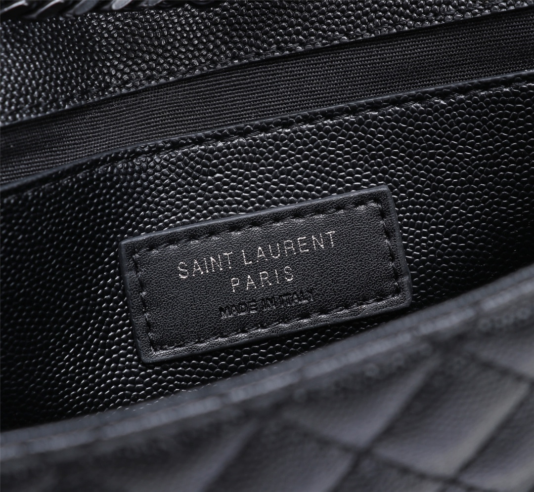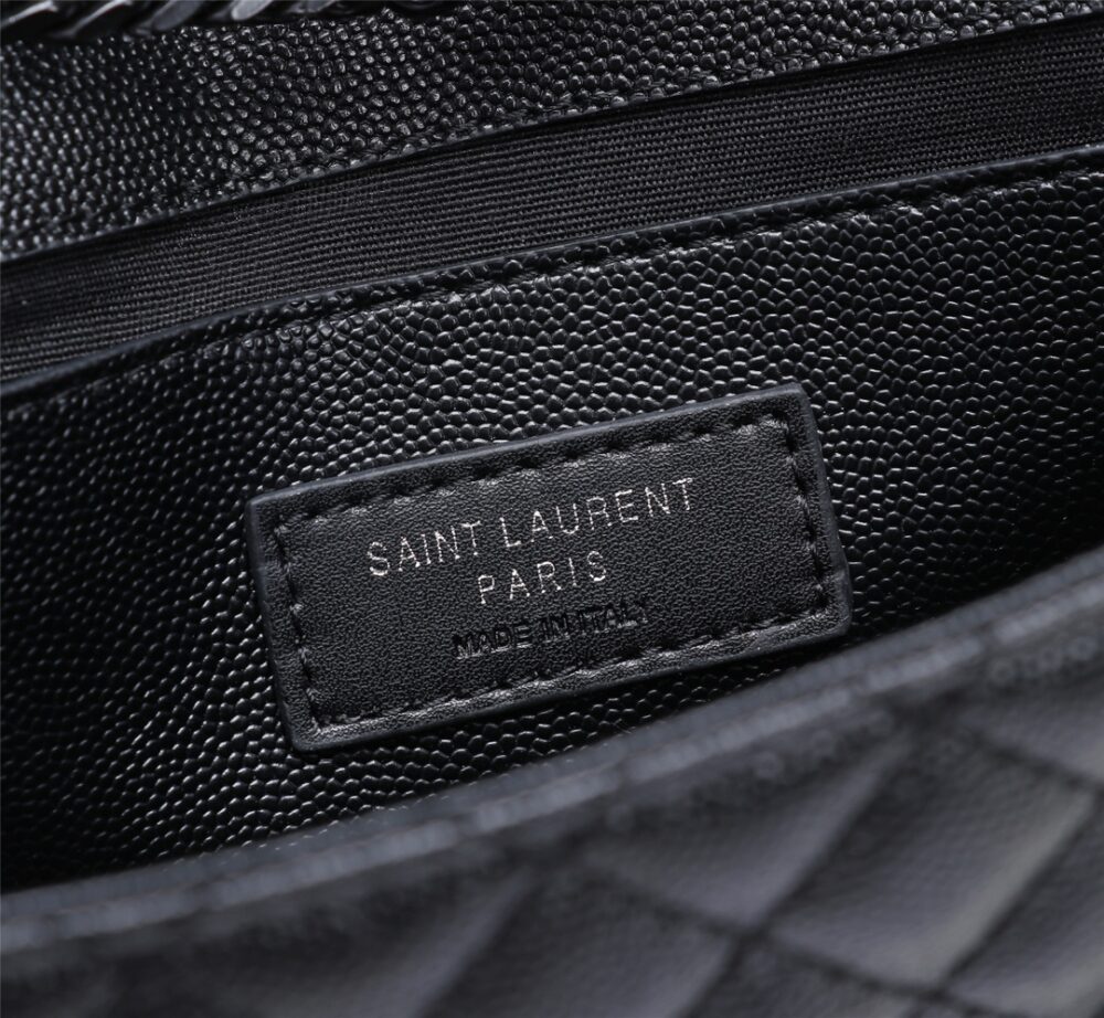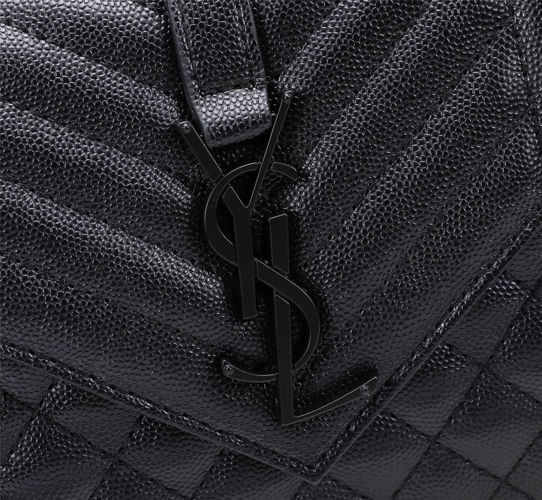 SAINT LAURENT ENVELOPE SMALL BAG IN MIX MATELASSÉ GRAIN DE POUDRE EMBOSSED BLACK NOIR 600195BOW981000