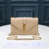 SAINT LAURENT ENVELOPE SMALL IN QUILTED GRAIN DE POUDRE EMBOSSED LEATHER BEIGE 600195BOW912721 / 21CM / 8.2 INCHES