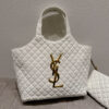 Shopping bag with toggle closure, featuring a removable zipped pouch, decorated with carré-quilted overstitching and the new sculpted jewel CASSANDRE.