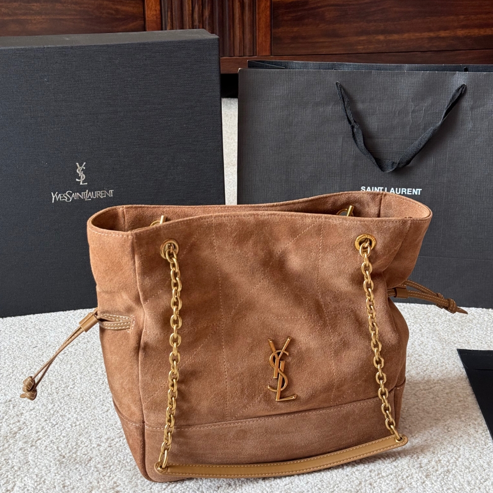 Saint Laurent Jamie Brown 28Cm / 13.8 x 11.8 inches / Bronze-tone hardware / Shopping Bag / Elegant Style