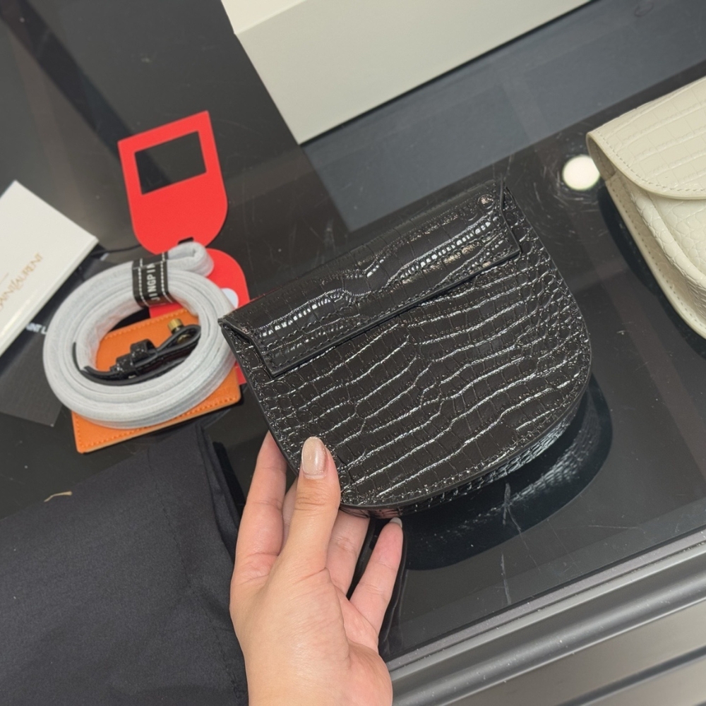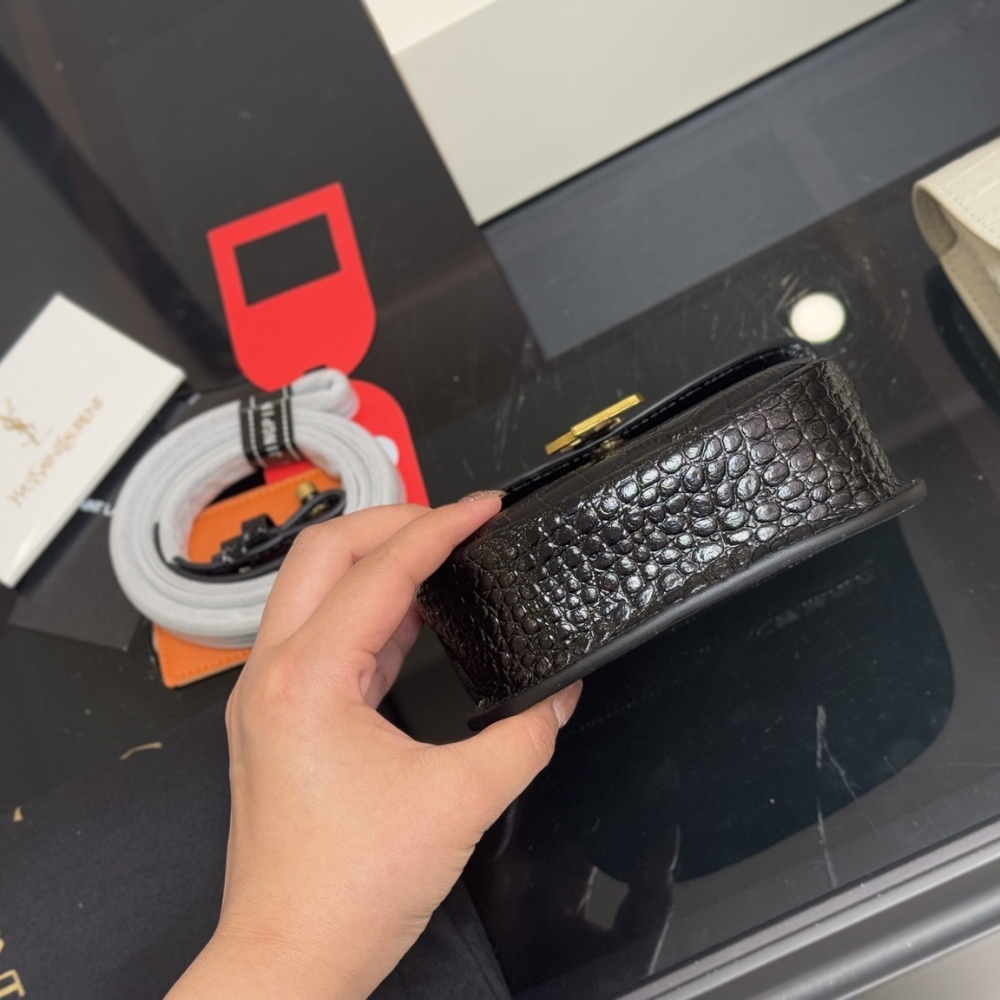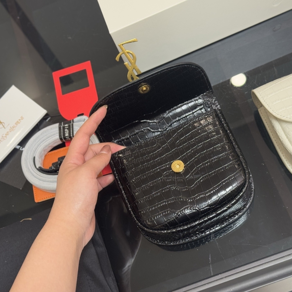 The Kaia Bag is a timelessly elegant accessory from Saint Laurent. Its structured shape is iterated in Black-embossed leather and punctuated with an antiqued gold-tone YSL monogram on the flap. Use the strap to sling it over your shoulder and watch how it adds sophistication to your outfits.
