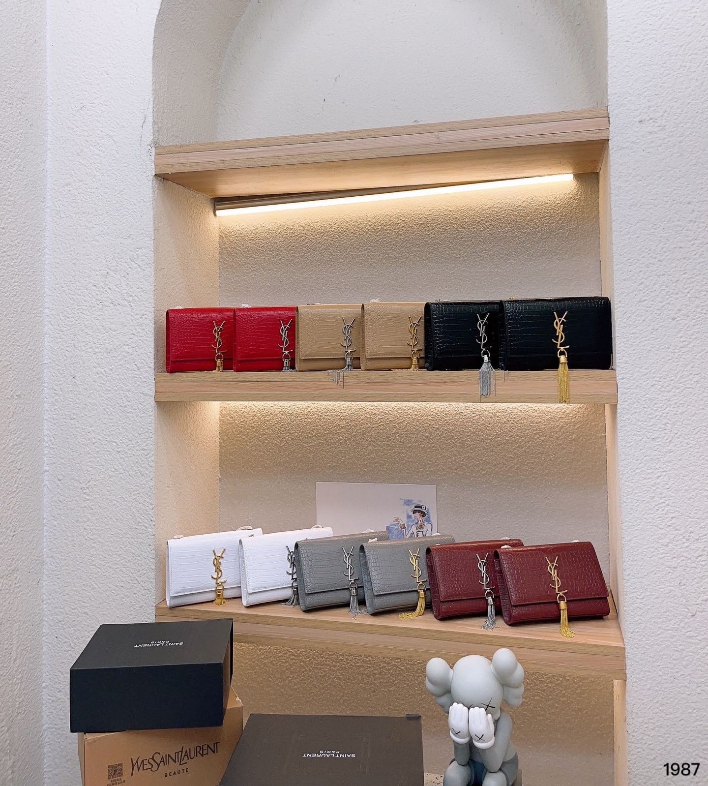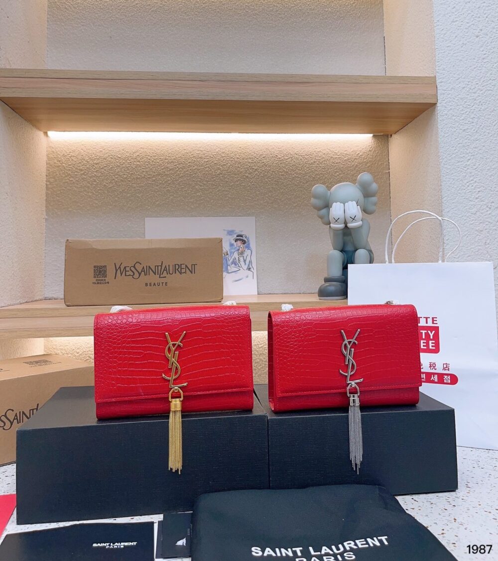 Saint Laurent Kate Monogram Shoulder Bag Crocodile Red 20cm