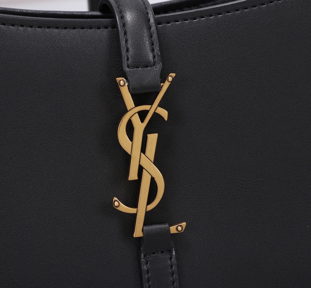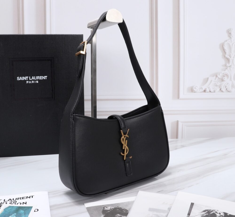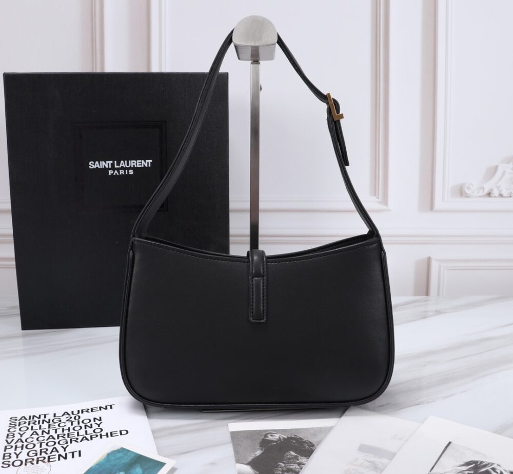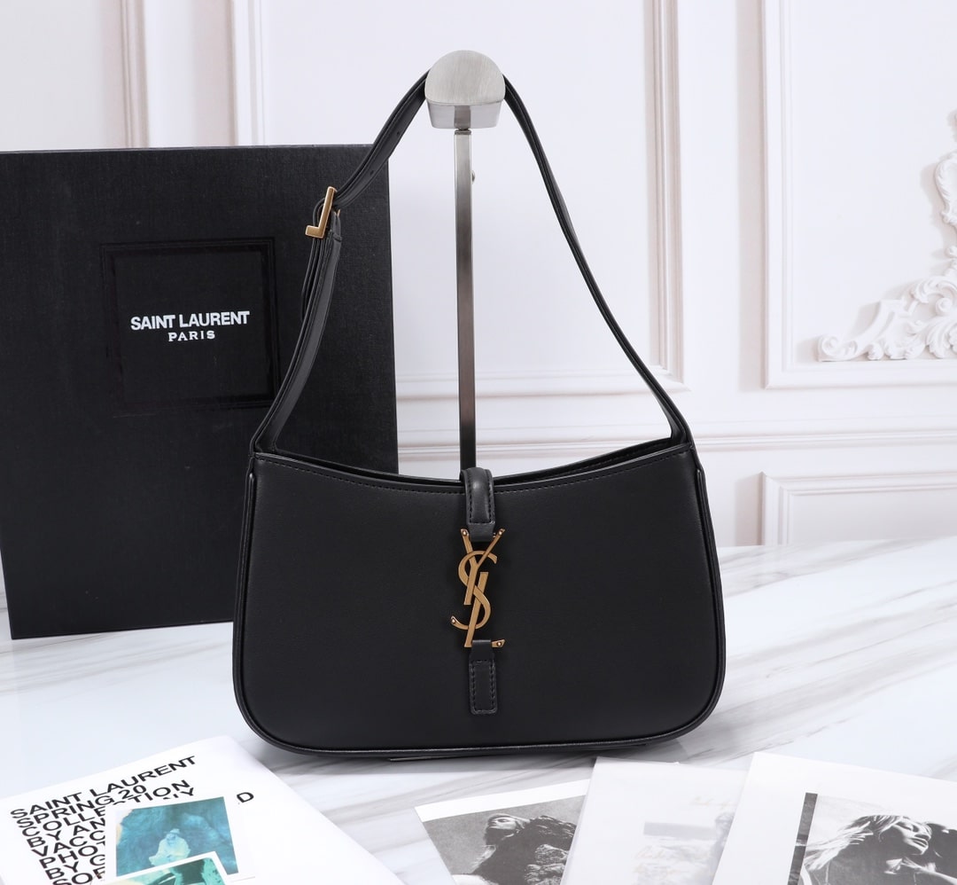 SAINT LAURENT LE 5 À 7 HOBO BAG IN SMOOTH LEATHER BLACK GOLD 23CM 6572282R20W1000
