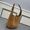 The supple version of the iconic LE 5 À 7, now in suede with a matching suede lining. This spacious bag features an inner zip pocket and leather tab closure decorated with the CASSANDRE. An adjustable strap allows for bespoke carry options.