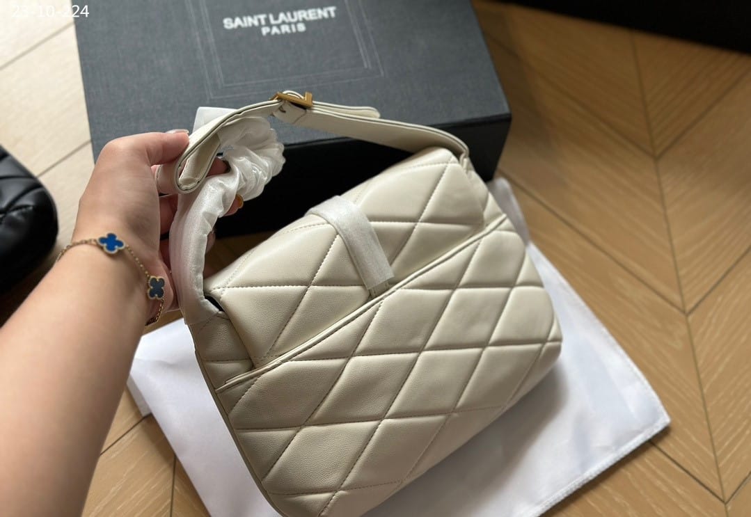 Saint Laurent Le 57 Quilted Leather Shoulder Bag / White 27cm