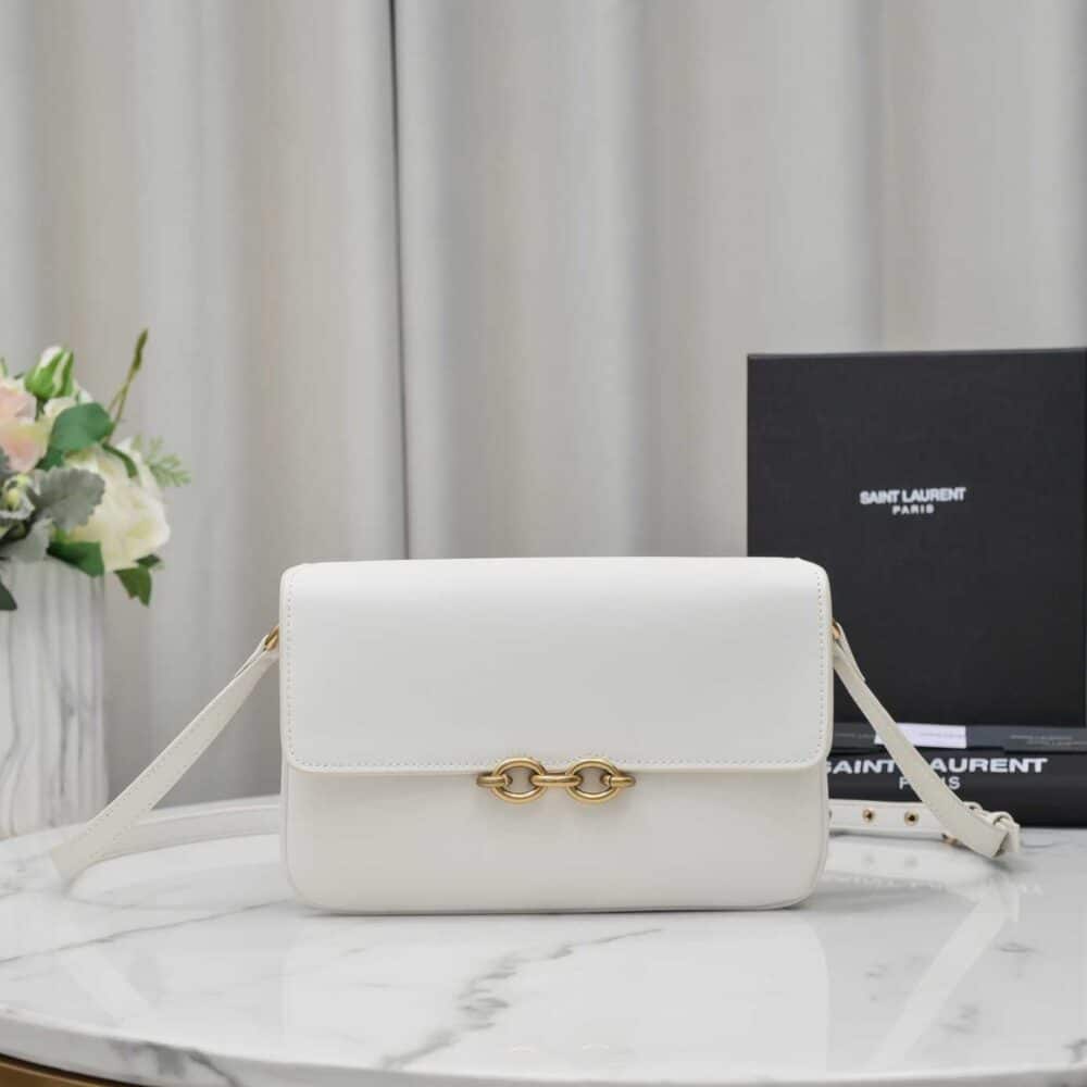 SAINT LAURENT LE MAILLON SATCHEL IN SMOOTH LEATHER BLANC VINTAGE BAGS 6497952R20W9207