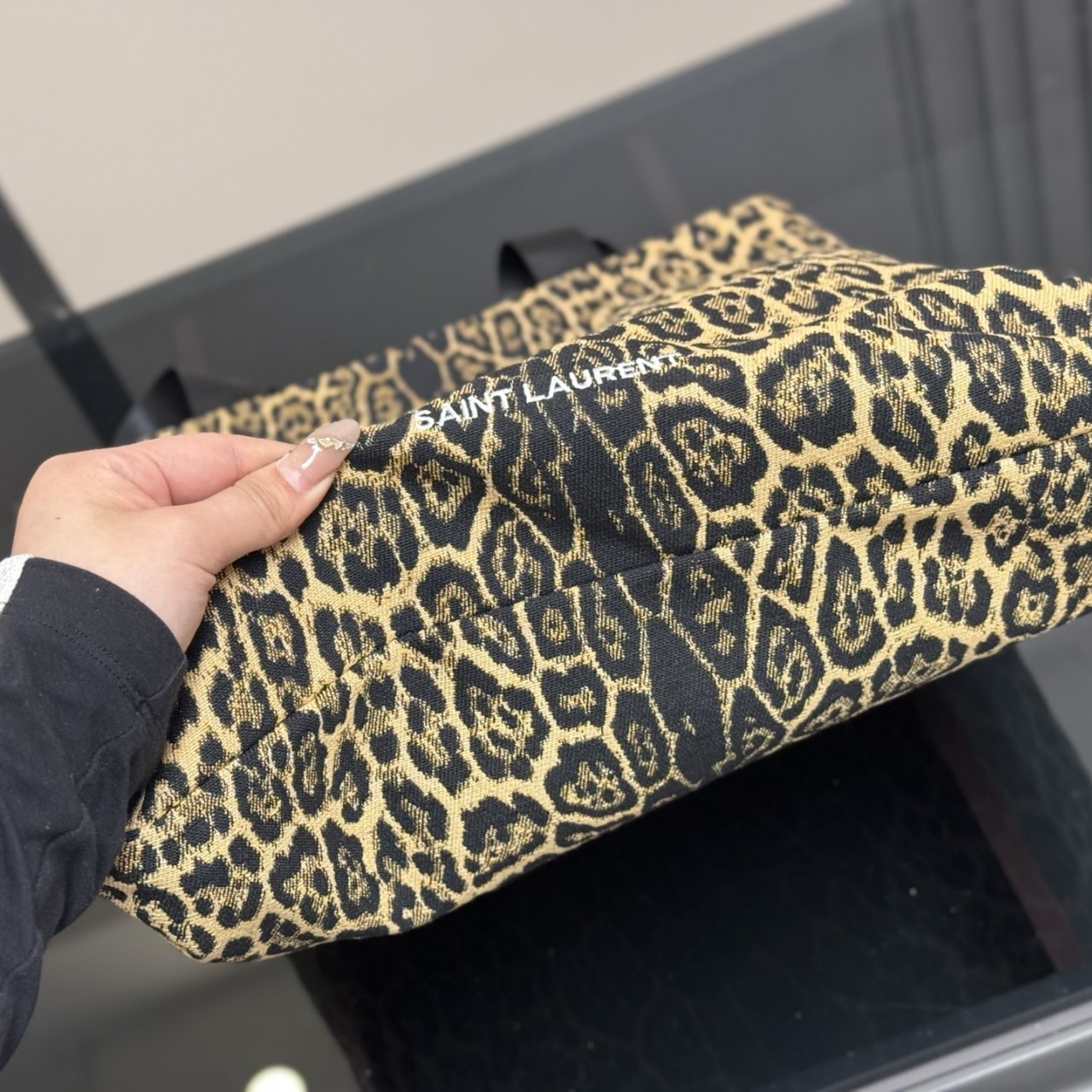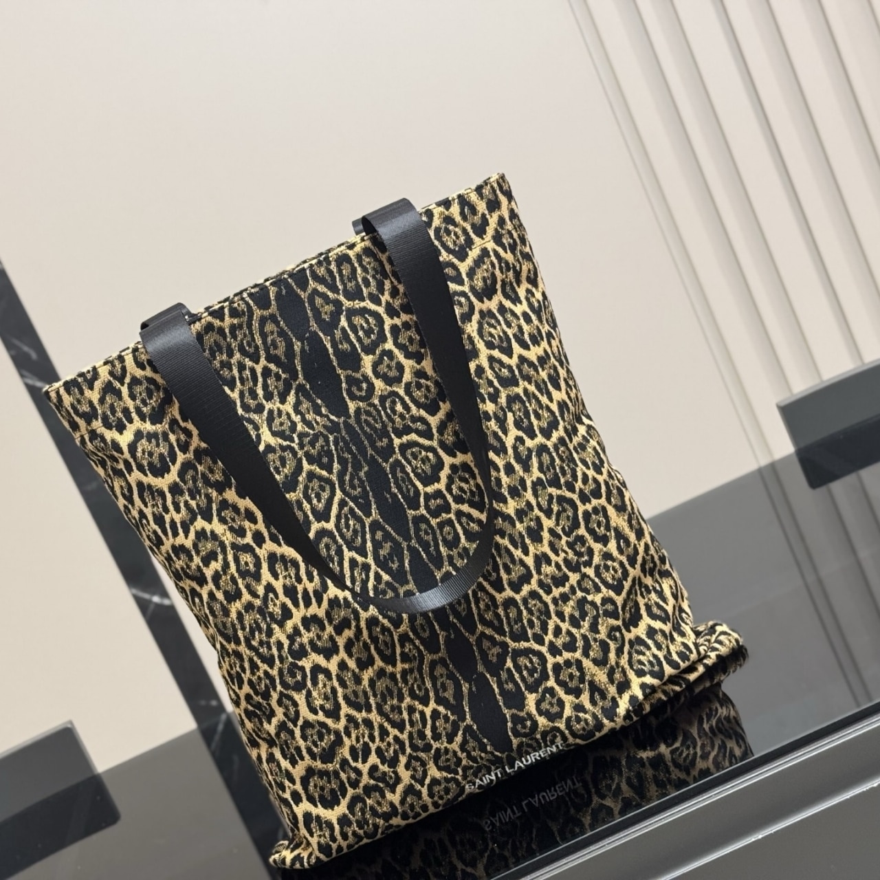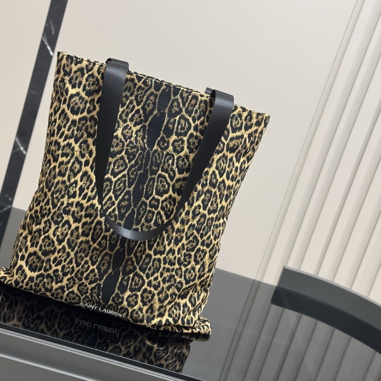 SAINT LAURENT LEOPARD PRINT TOTE BAG 46CM