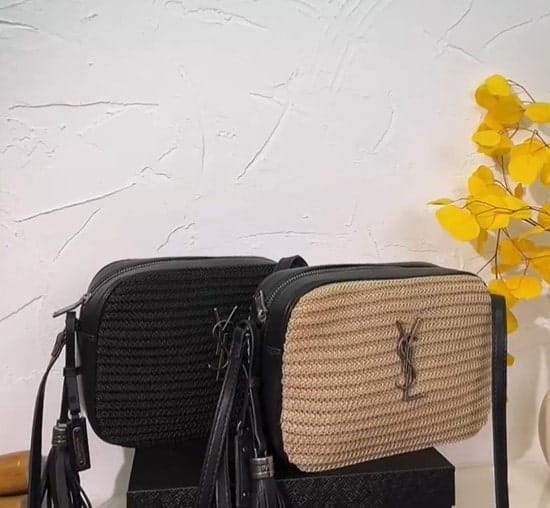 Saint Laurent Lou Camera Bag In Raffia And Smooth Leather Naturel 6125429OBEW7070 / 24 cm / 9.4 inches