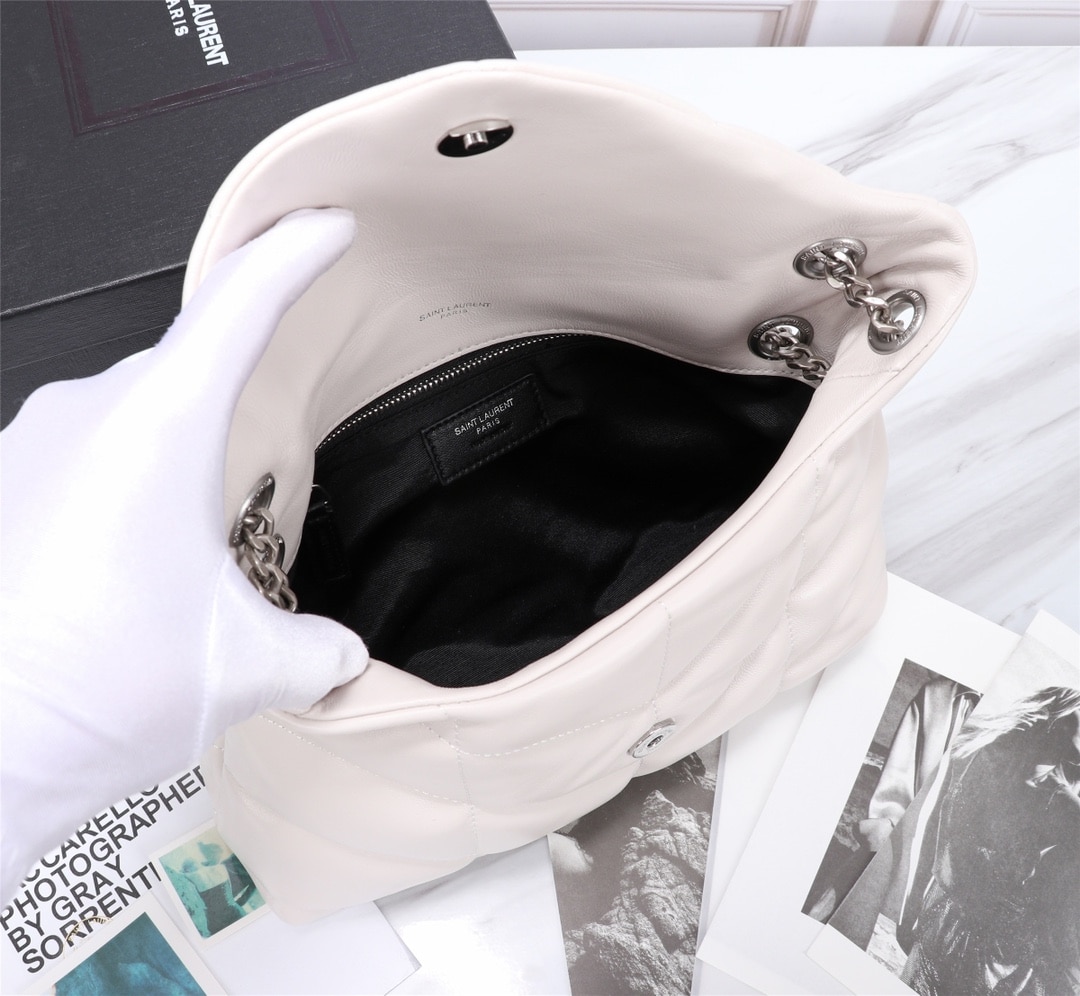 SAINT LAURENT LOULOU SMALL CHAIN BAG IN MATELASSÉ “Y” WHITE SILVER 29CM 494699DV7269207