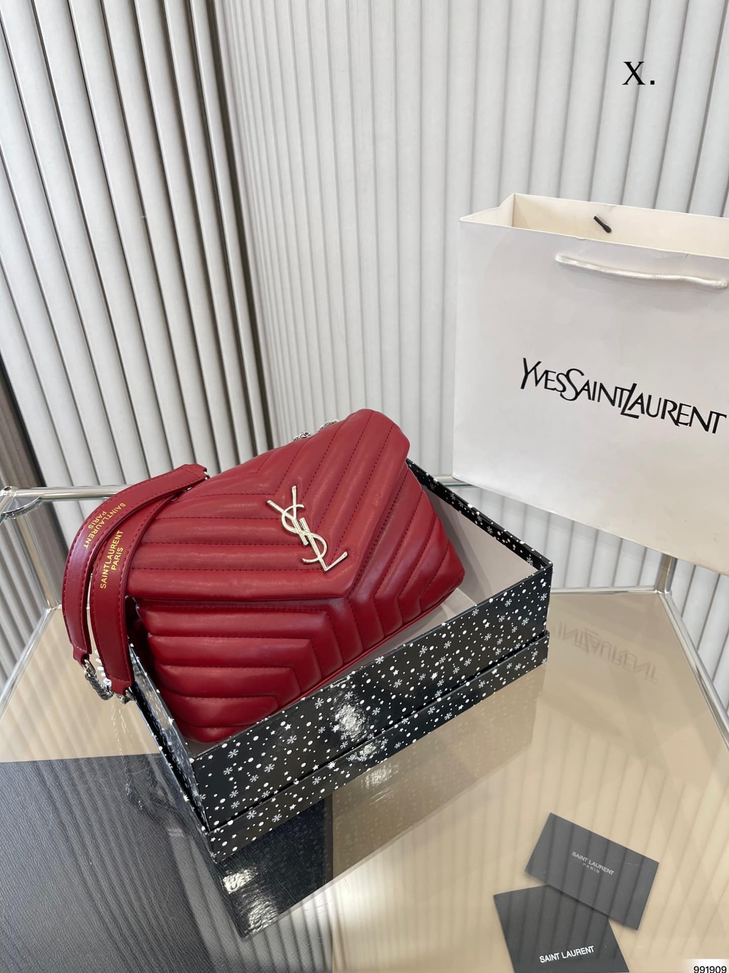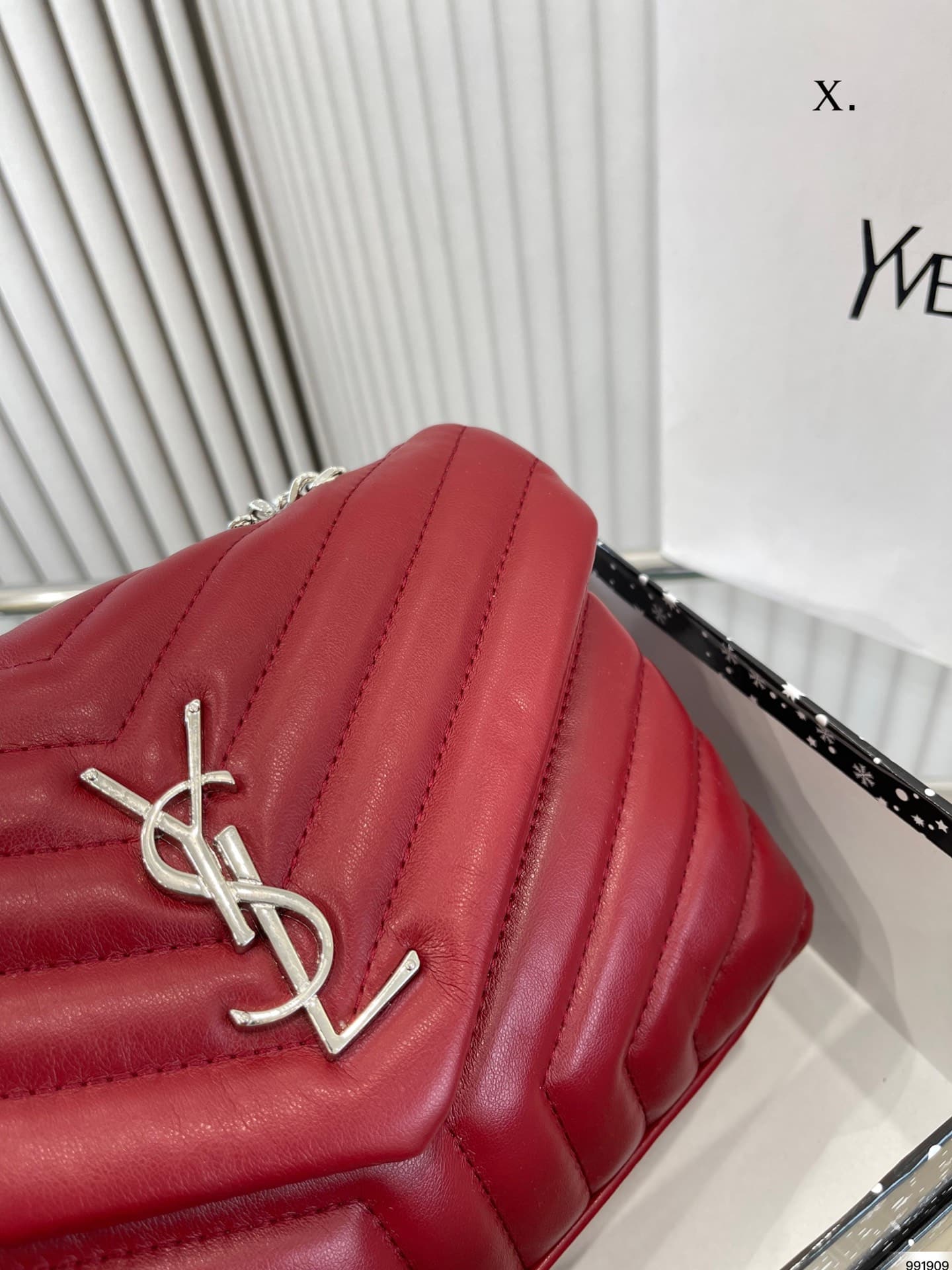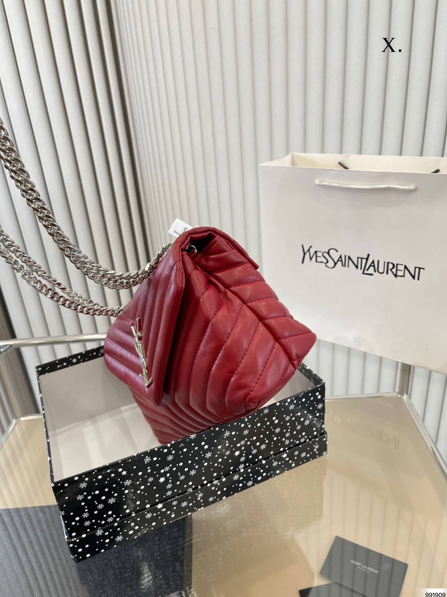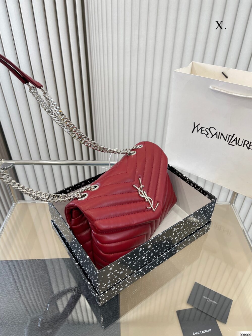 SAINT LAURENT LOULOU SMALL CHAIN BAG IN QUILTED “Y” LEATHER WINE RED 25CM