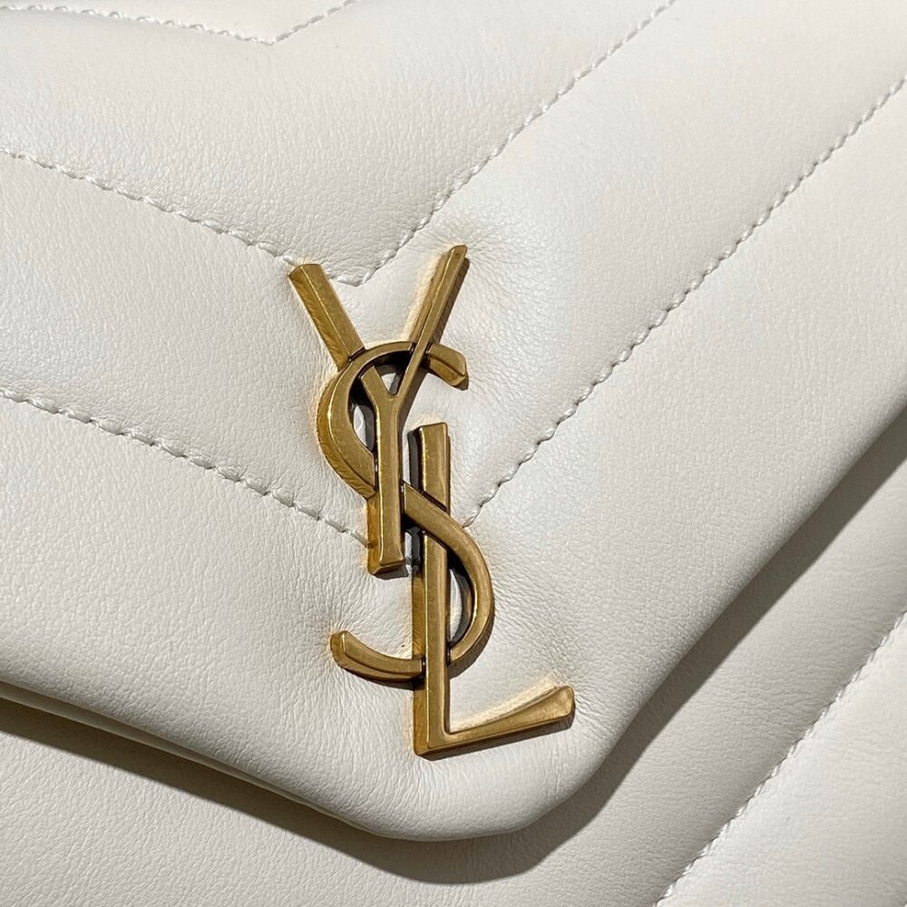 Saint Laurent Loulou Toy Strap Bag In Quilted “Y” Leather / White 20cm