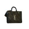 - Interlaced YSL logo hardware with fringe trim at front.