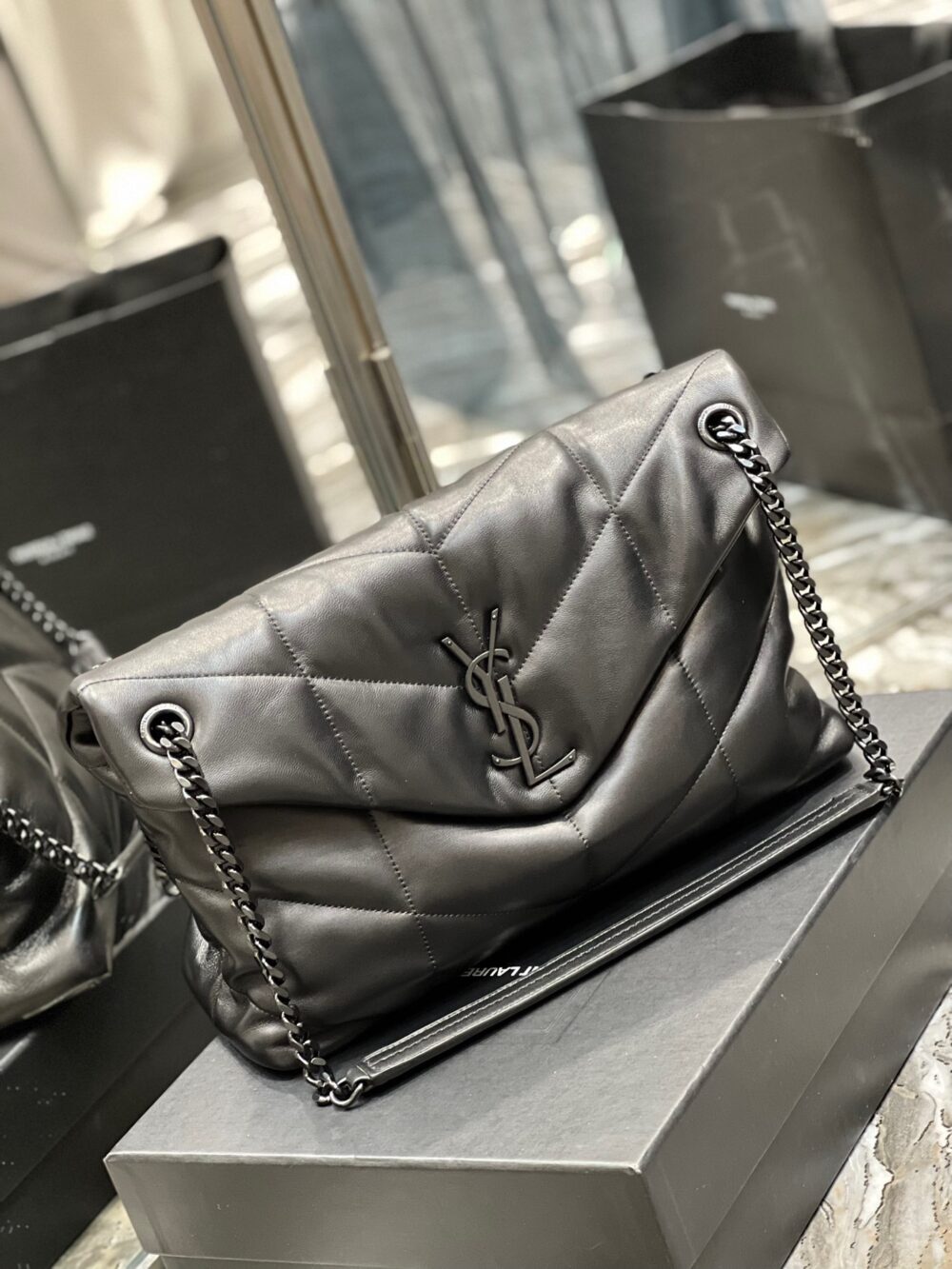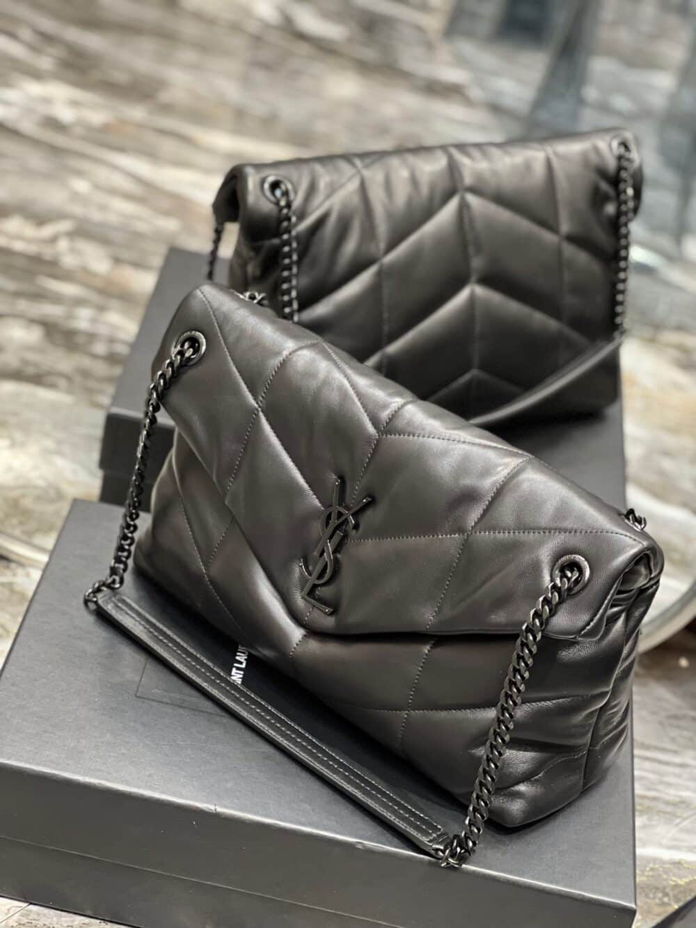 Saint Laurent Puffer Medium Chain Bag In Quilted / Matte Black Metal Hardware 35cm