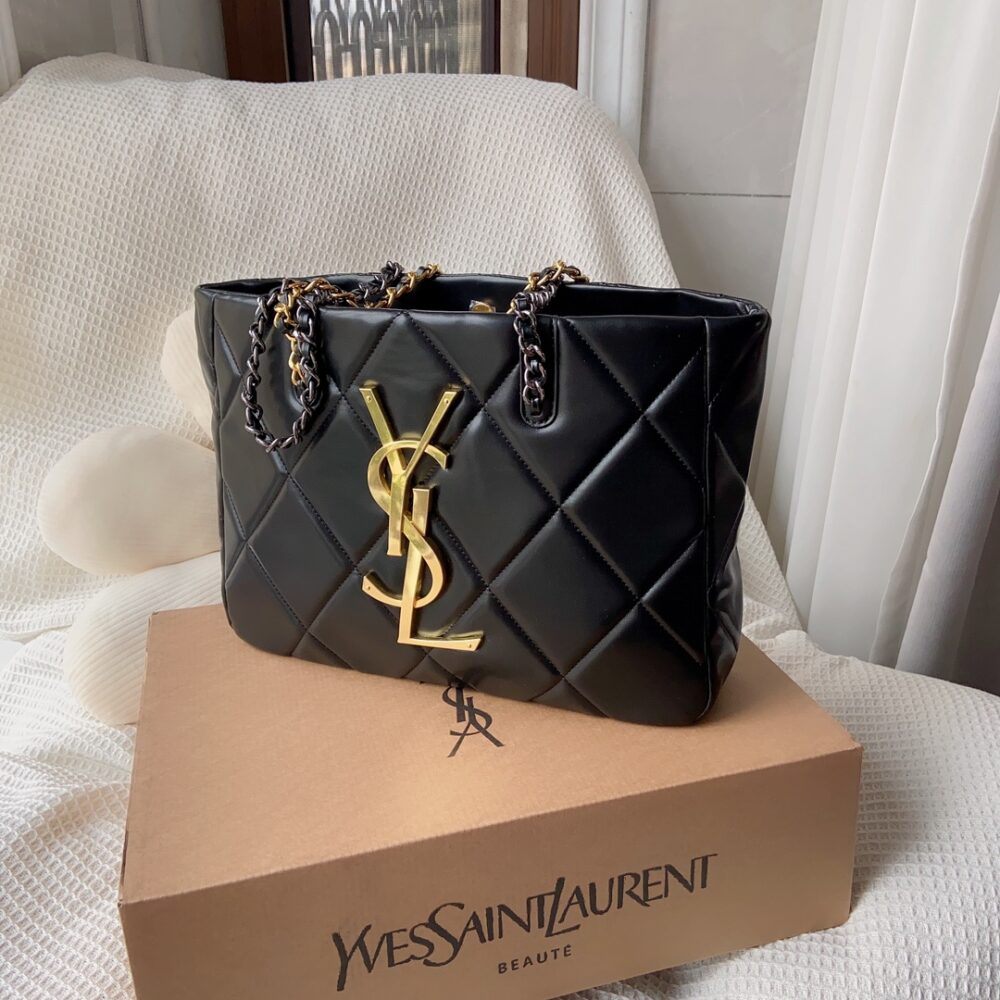 SAINT LAURENT QUILTED SHOPPING BAG BLACK