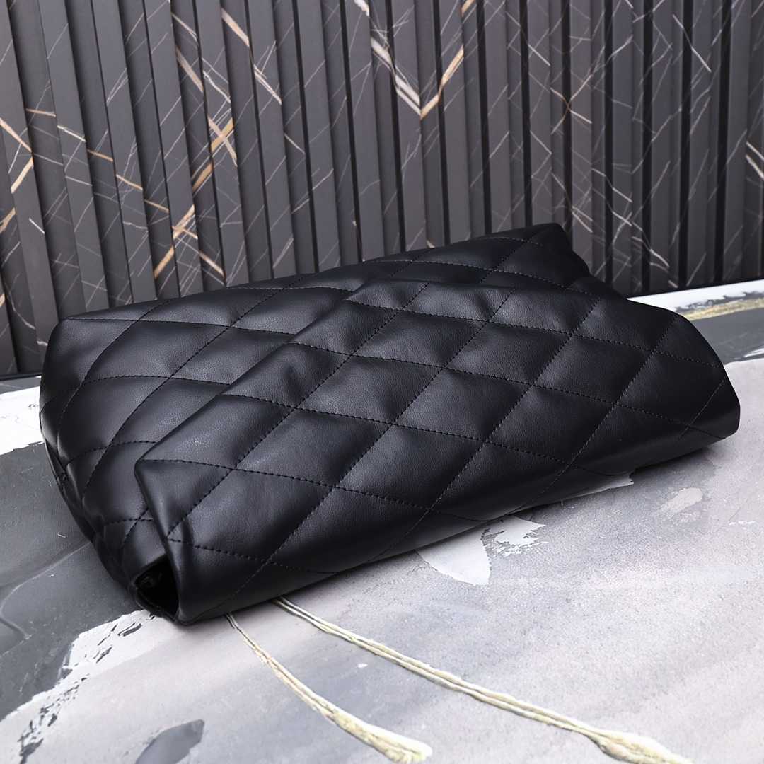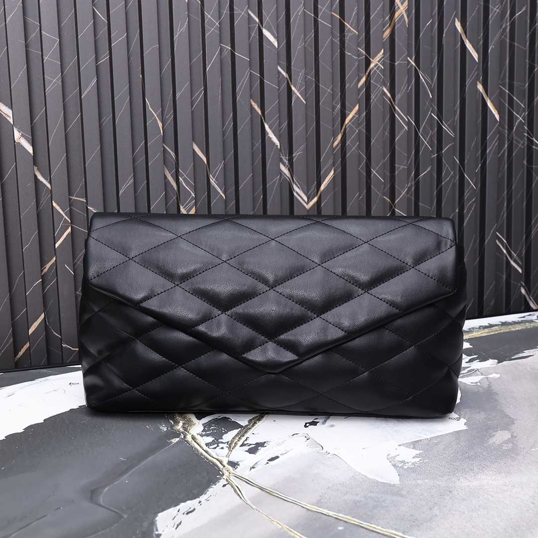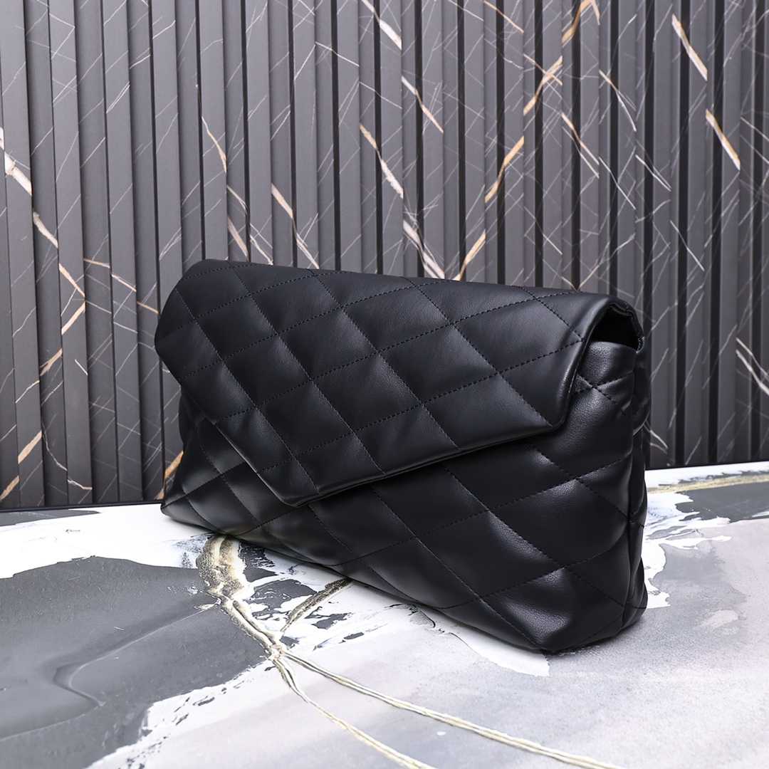 SAINT LAURENT SADE PUFFY LEATHER ENVELOPE CLUTCH BAG BLACK 6550041EL01 37CM