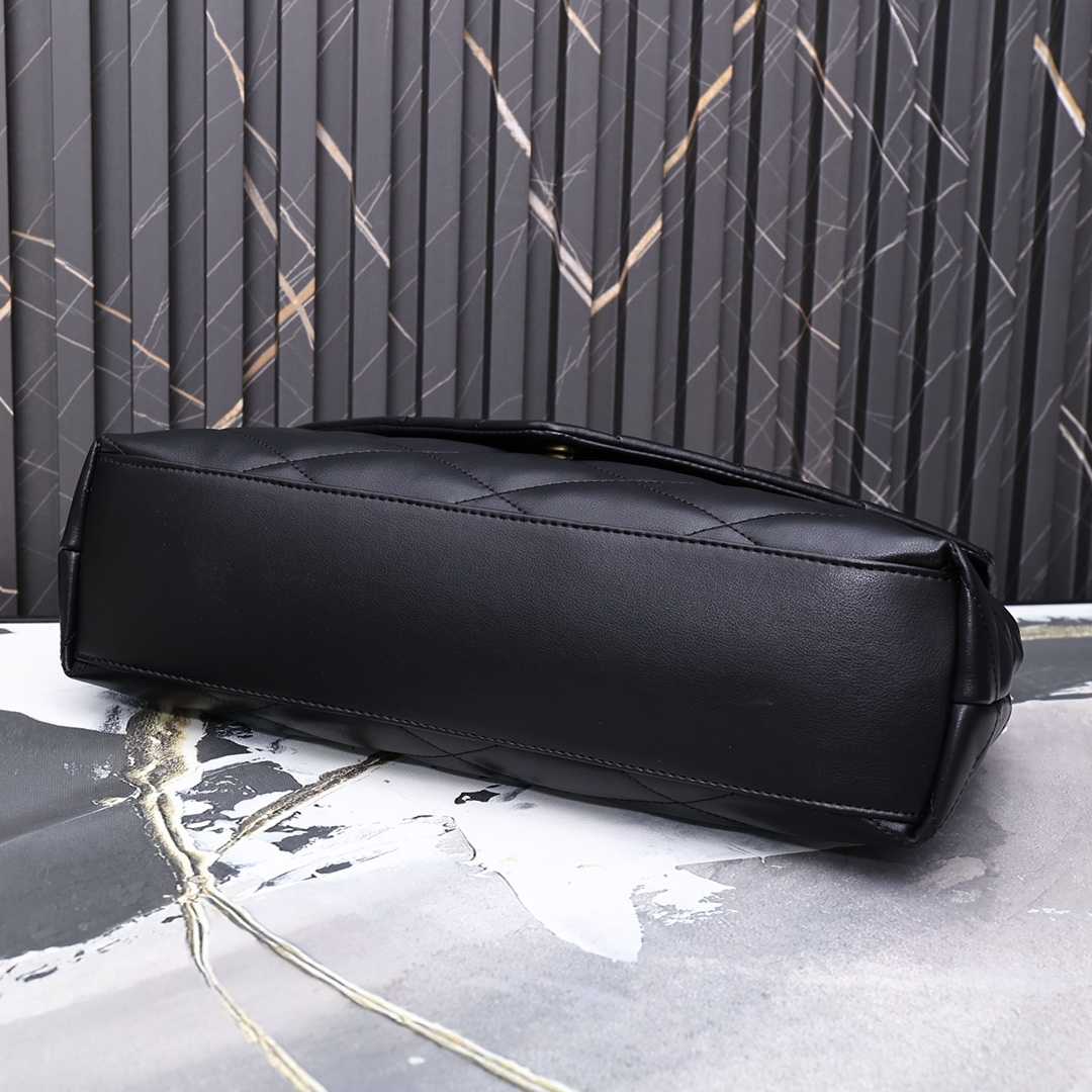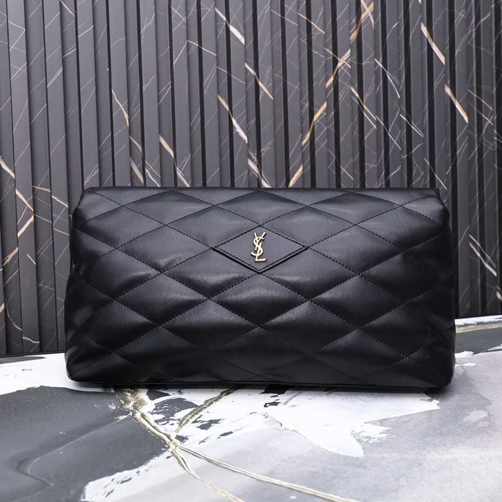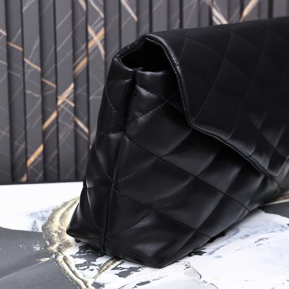 SAINT LAURENT SADE PUFFY LEATHER ENVELOPE CLUTCH BAG BLACK 6550041EL01 37CM