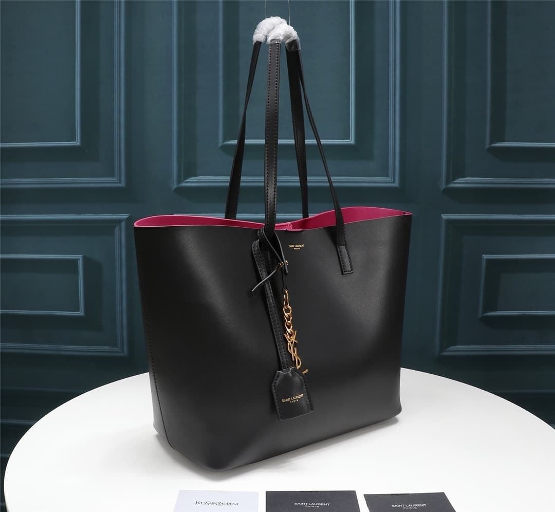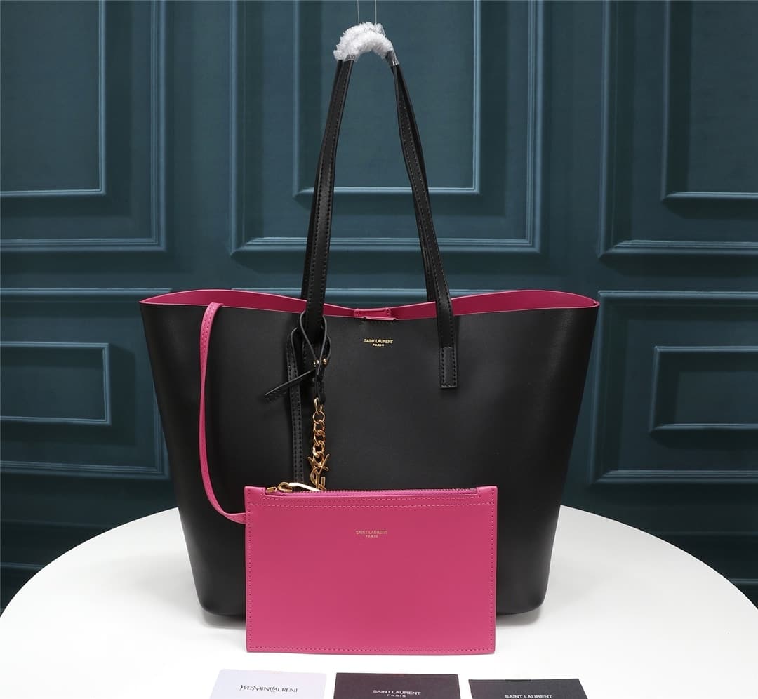 Saint Laurent Shopping Tote Leather / Black Pink 33Cm
