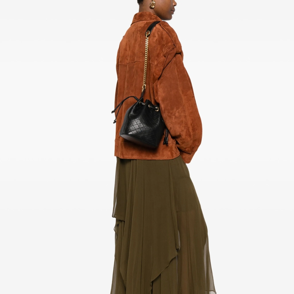 A testament to Saint Laurent’s exceptional craftsmanship, this bucket bag will become your next go-to for off-duty days. Its compact profile is rendered from smooth leather with diamond quilting – a signature detail by the Maison – and features an interior pouch to ensure your most-reached-for items are easy to find.
