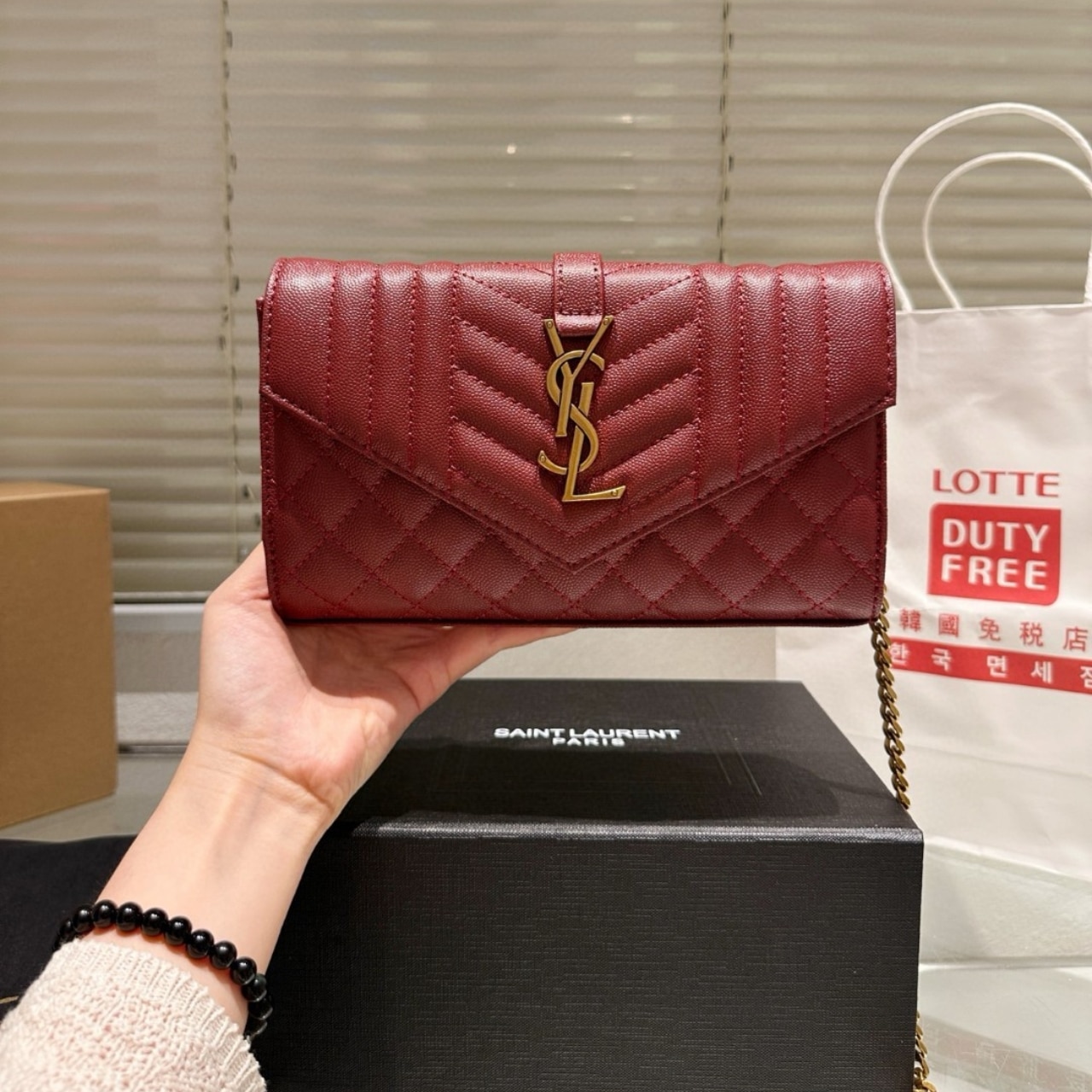 Saint Laurent Small Grain De Poudre Triquilt Monogram College Bag Red / 20 Cm / 7.9 Inches
