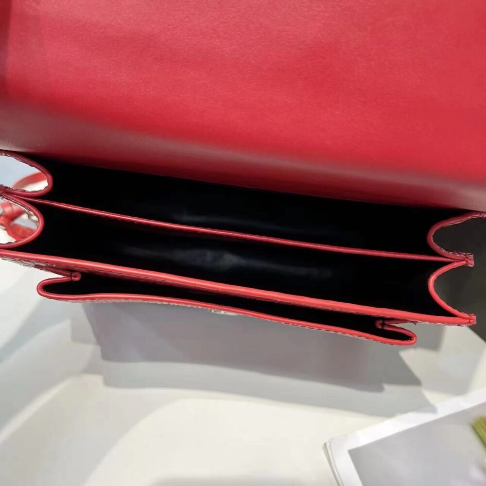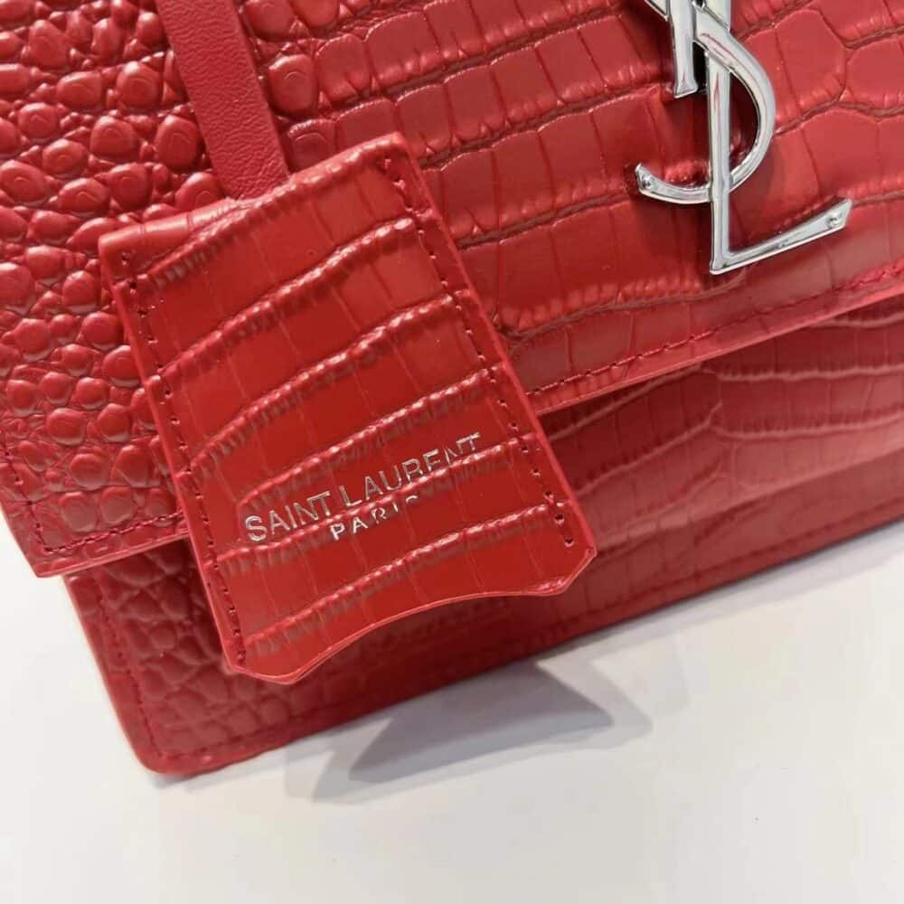 SAINT LAURENT SUNSET EMBOSSED LEATHER BAGS RED 22CM