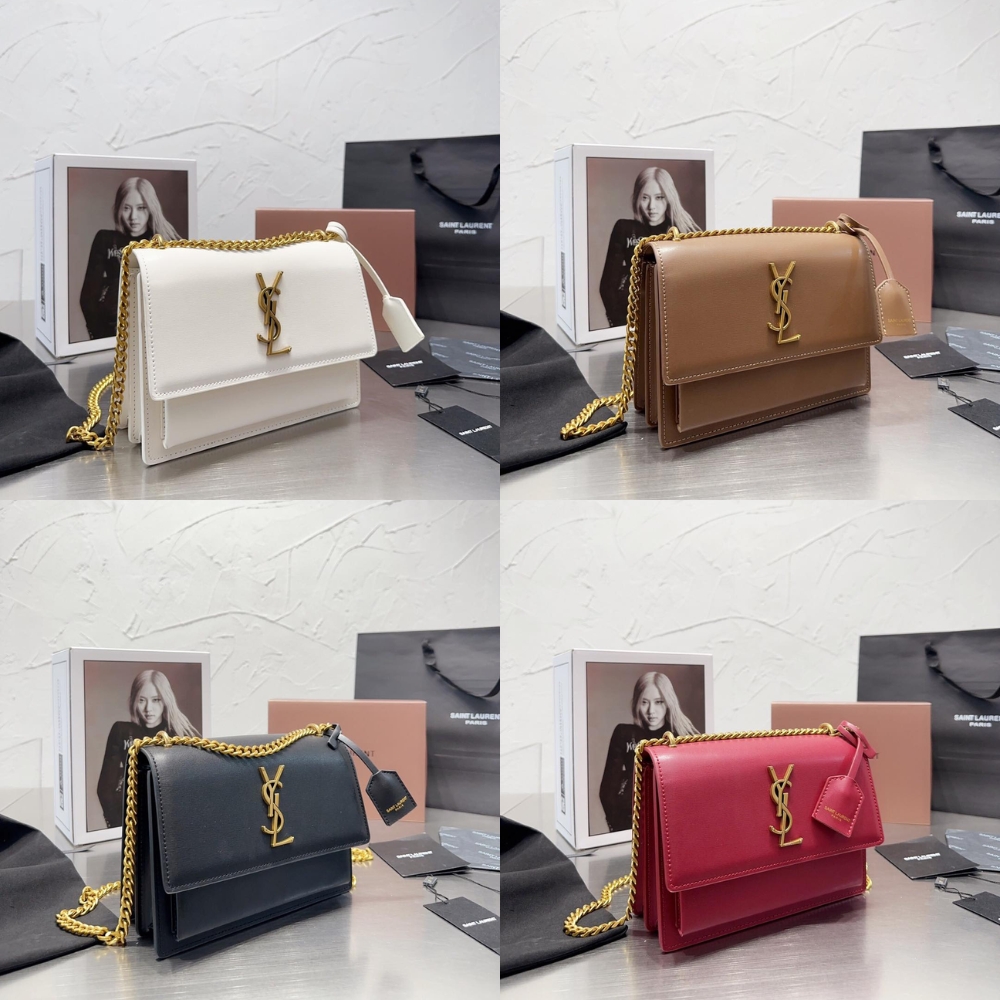 Saint Laurent Sunset Medium Chain Bag In Smooth Leather Black 442906D420W1000 / 22Cm / 8.6 inches
