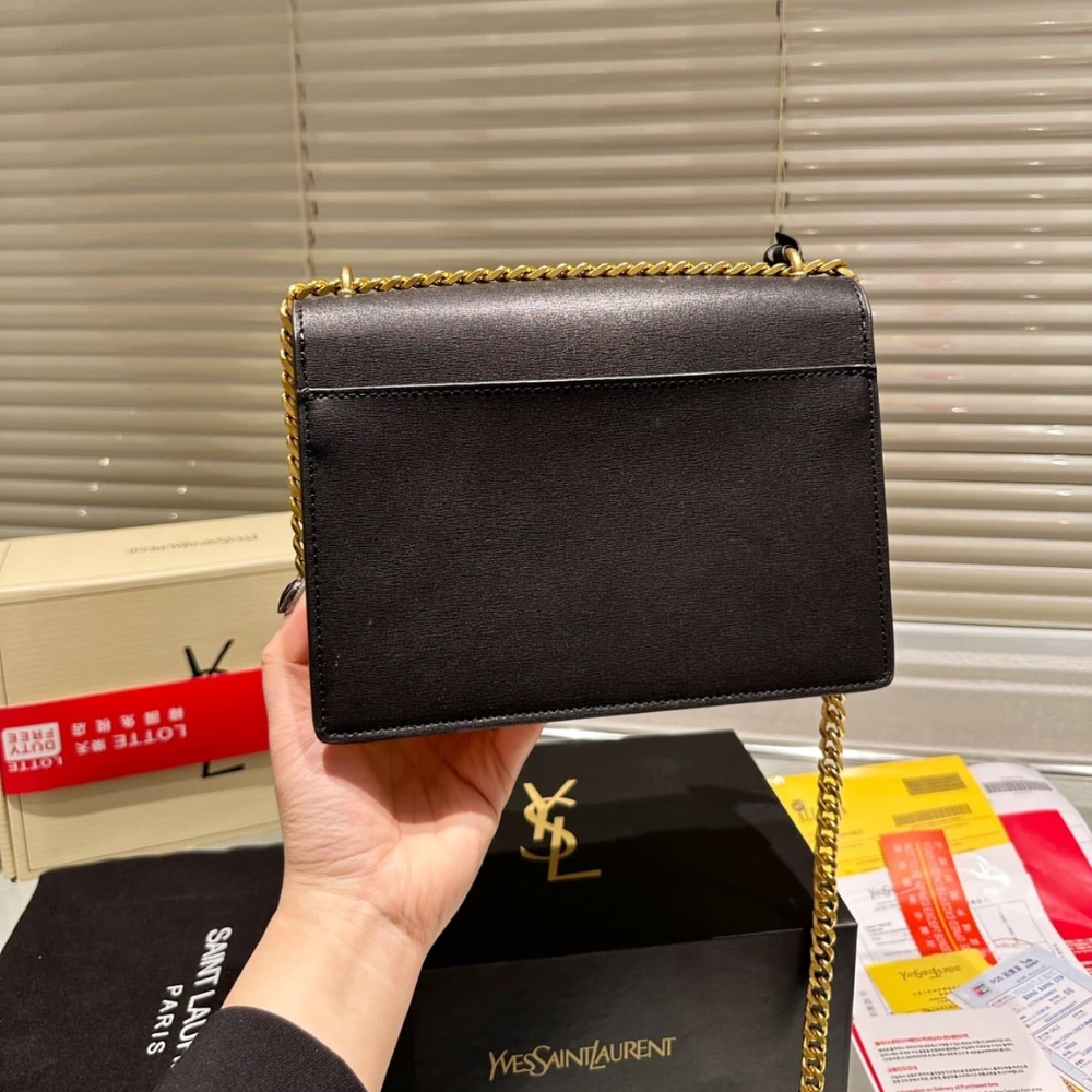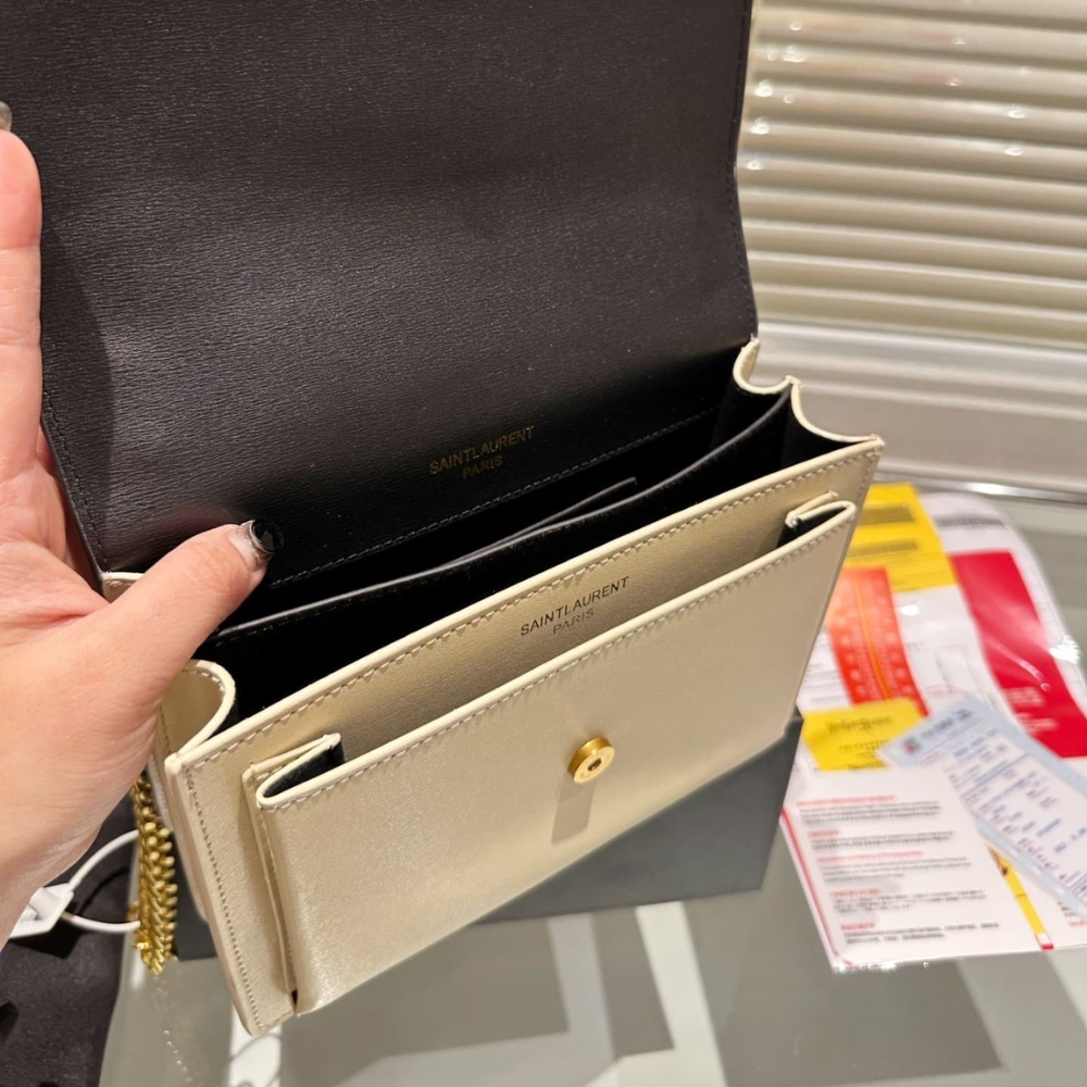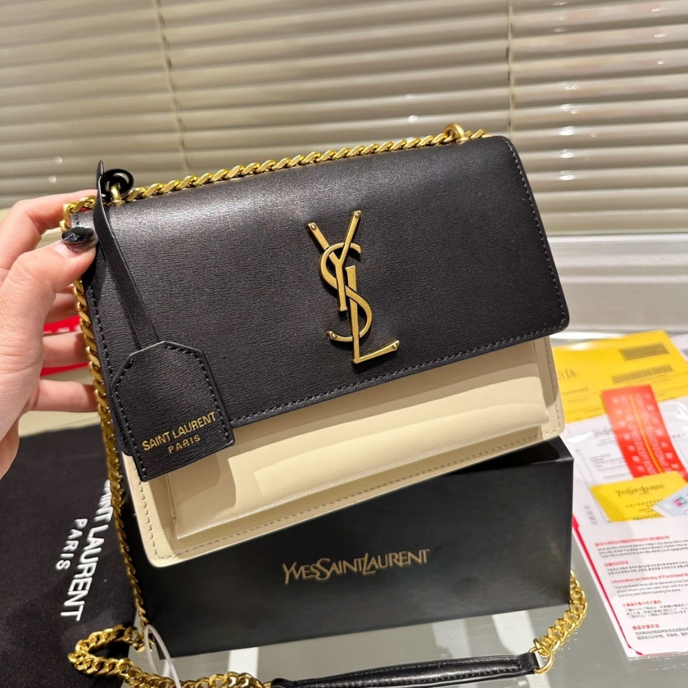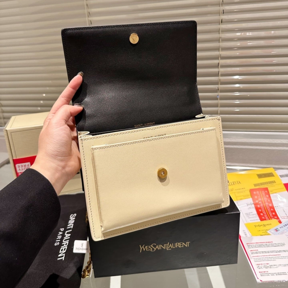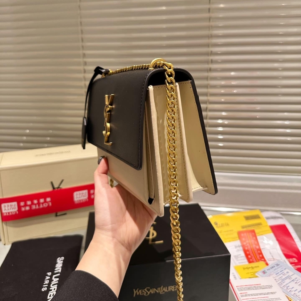 Saint Laurent Sunset Medium Chain Bag In Smooth Leather Beige Black 442906D42EW1089 / 22 cm / 8.7 inches
