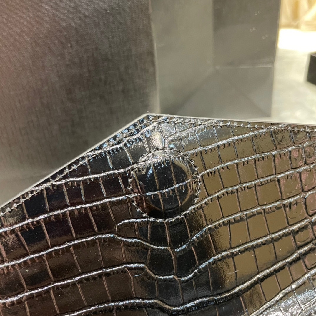 Saint Laurent Uptown Pouch In Crocodile Embossed Shiny Leather Gold Black 565739DND0J1000 / 27cm / 10.6 inches