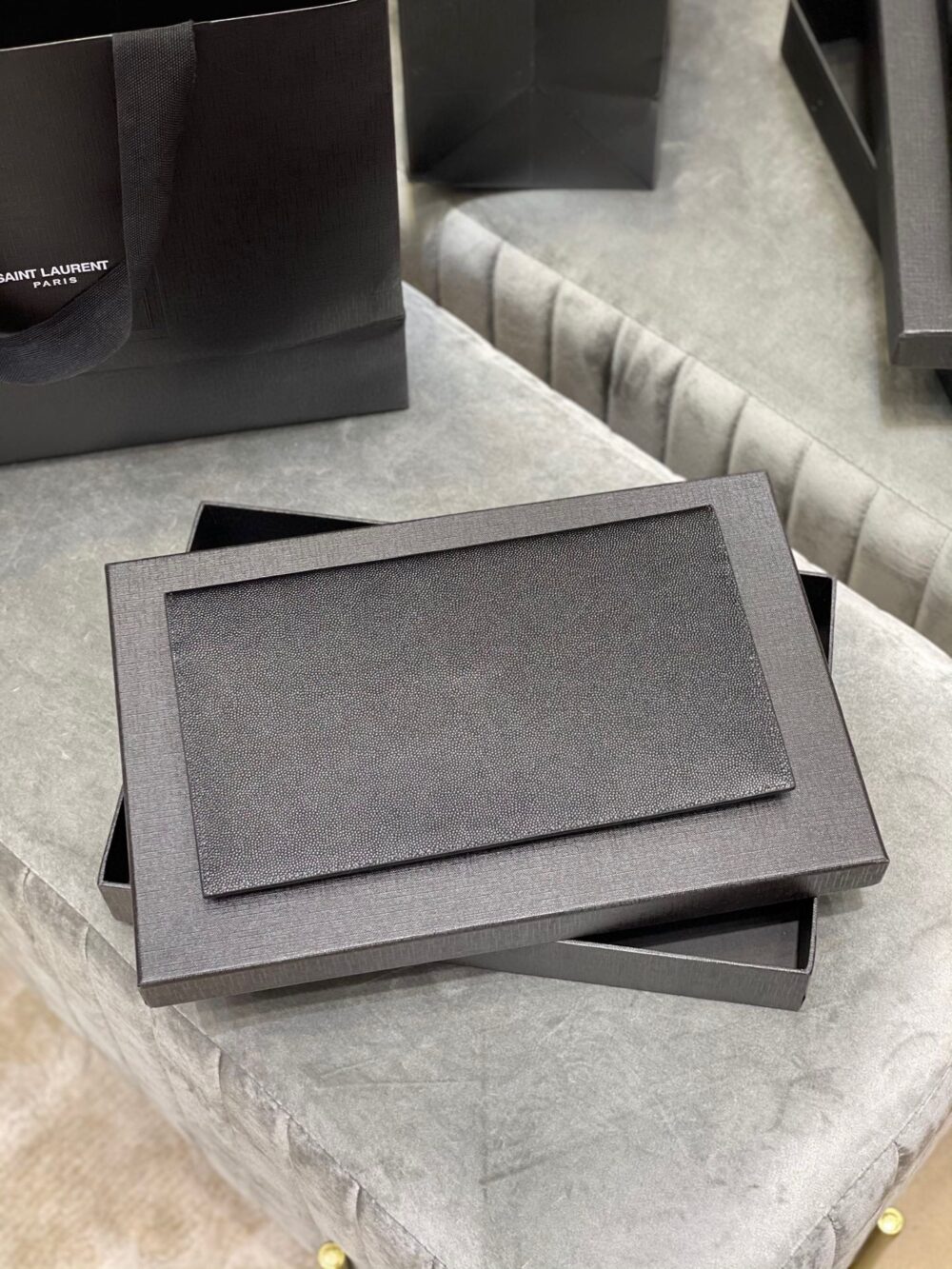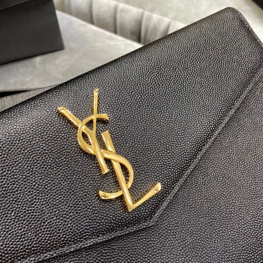 Saint Laurent Uptown Pouch In Grain De Poudre Leather Black 5657391GF0J1000 / 27cm / 10.6 inches