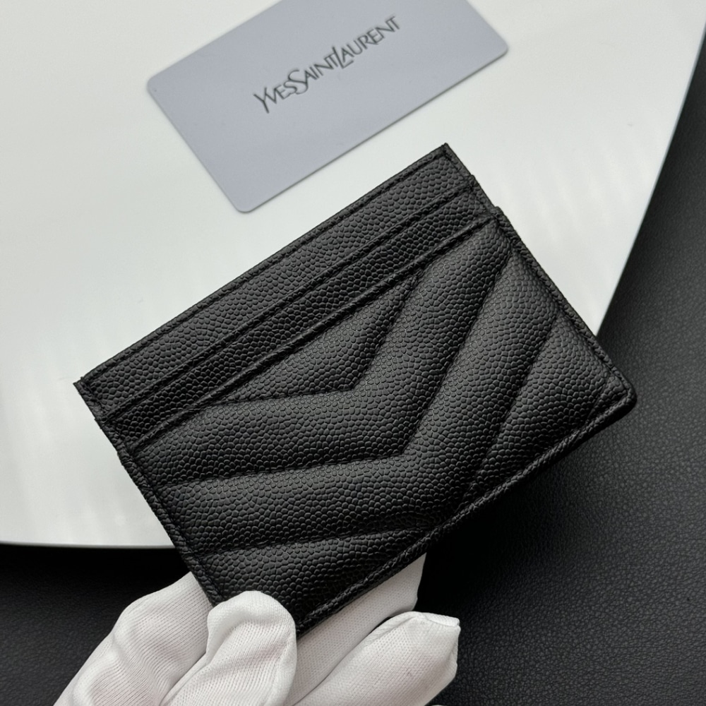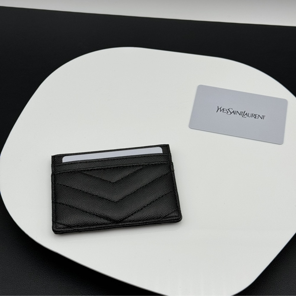 SAINT LAURENT WALLET CHEVRON AND LOGO CARD HOLDERS BLACK 10CM
