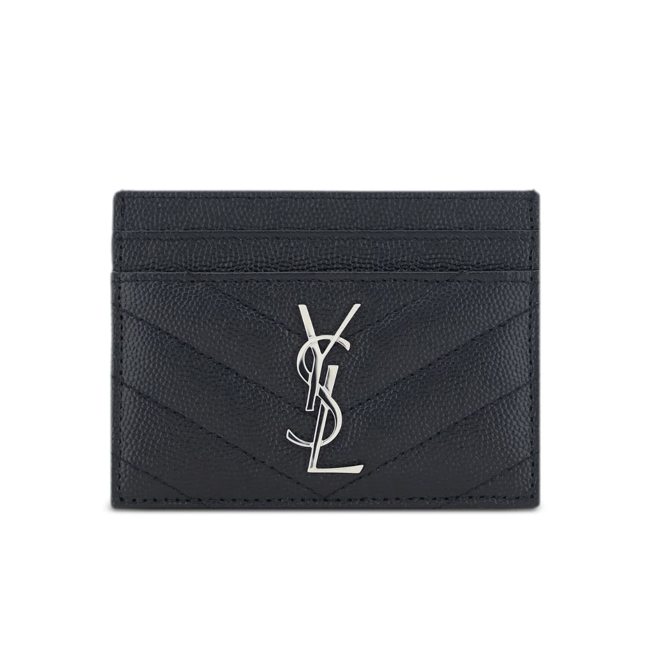 Saint Laurent Wallet Chevron And Logo Card Holders Black 10 cm / 3.9 inches