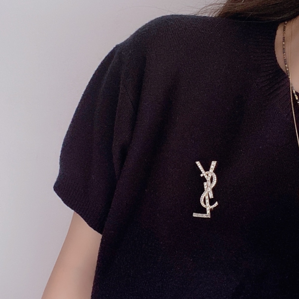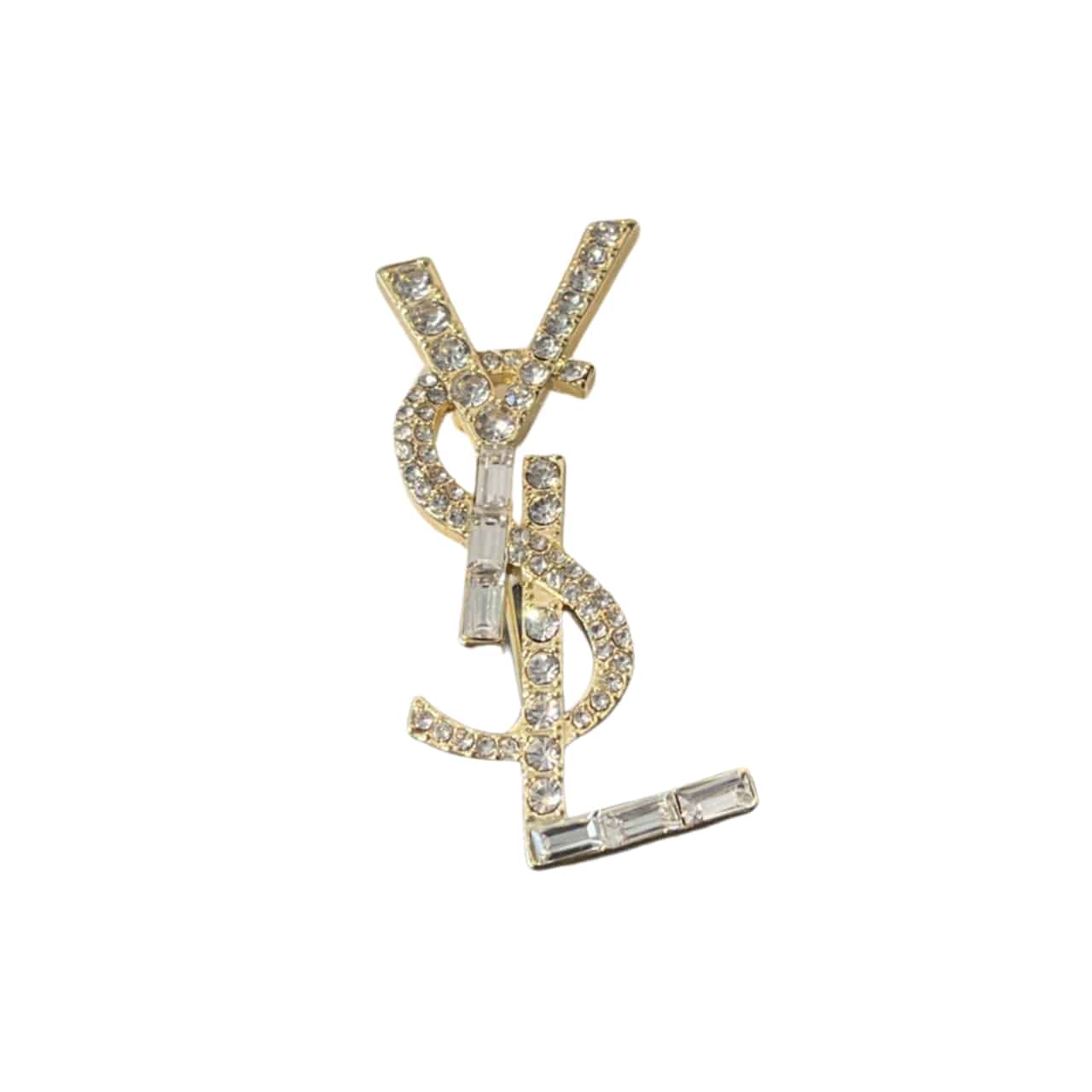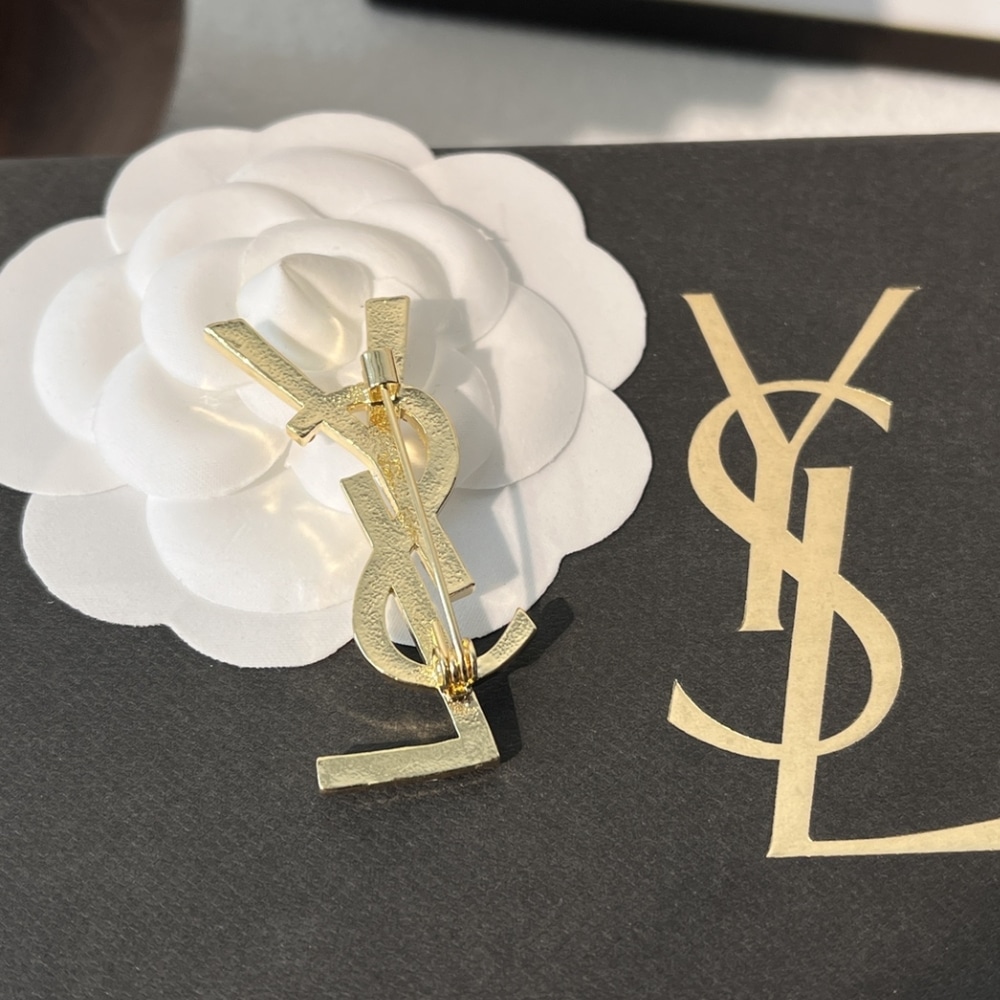 Saint Laurent YSL Brooch Gold With Stone