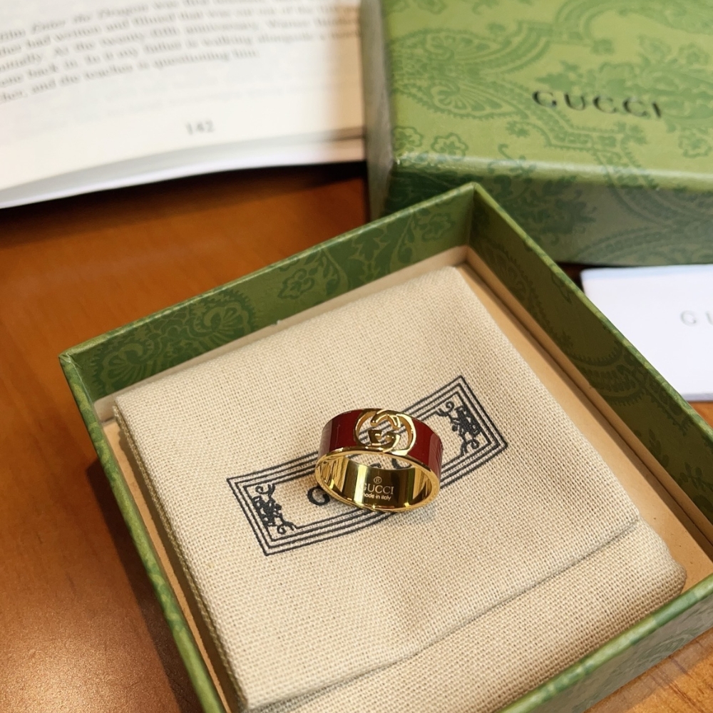 Gucci Interlocking Enamel Ring Red Gold 837518 J1630 8036