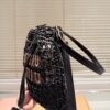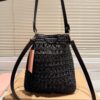 SUMMER SET: MIUMIU WOVEN FABRIC MINI BAG BLACK 22CM & RAFFIA EFFECT WOVEN FABRIC SLIDES BLACK