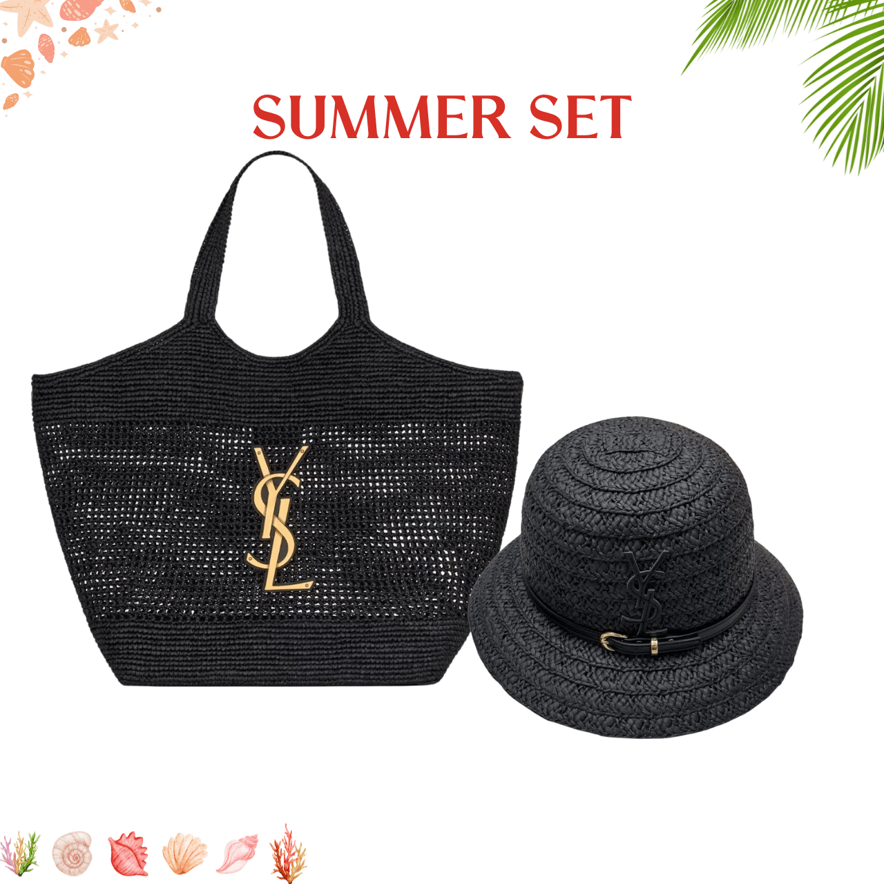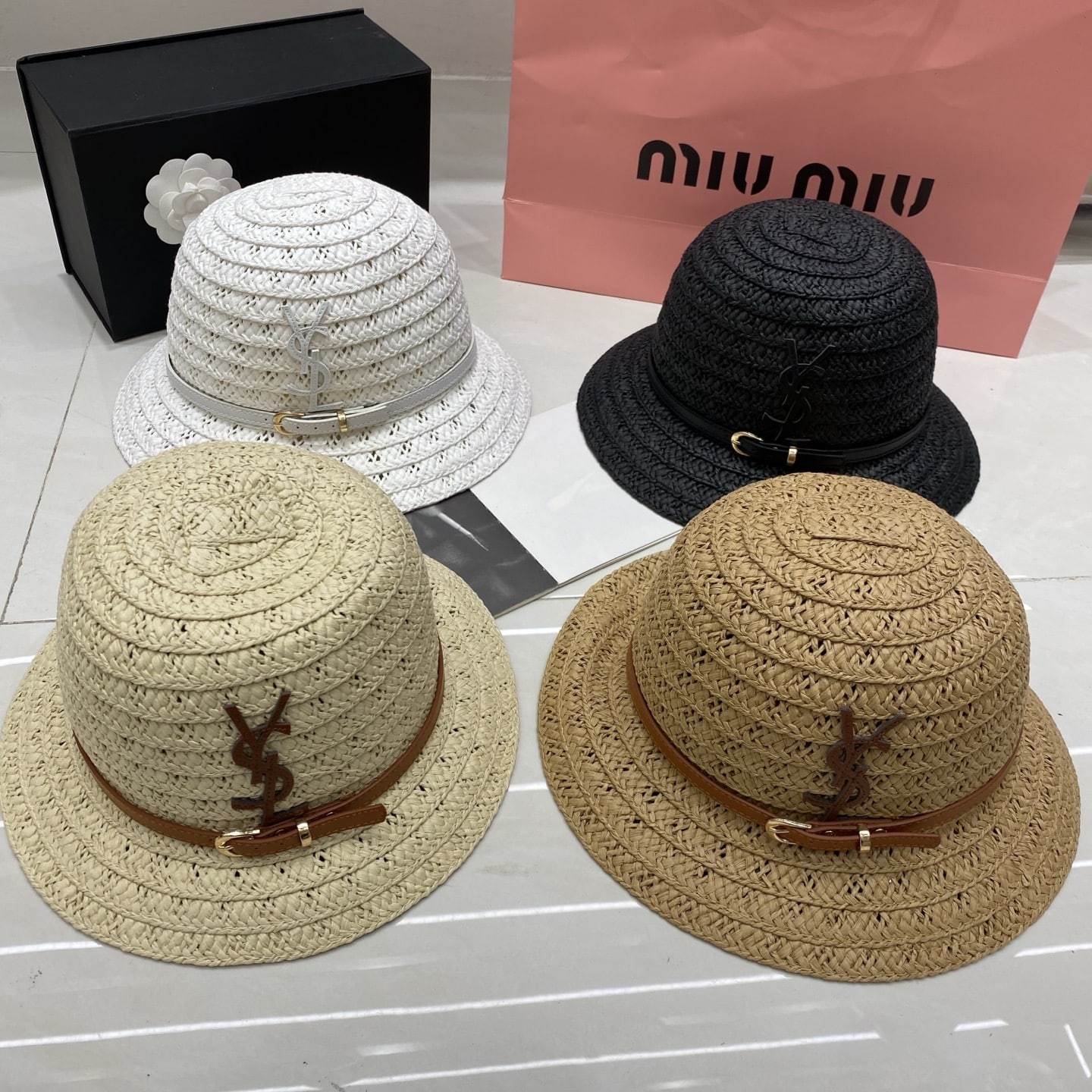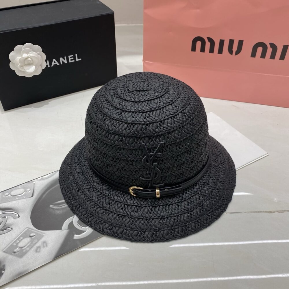 SAINT LAURERT YSL RAFFIA BUCKET HAT BLACK