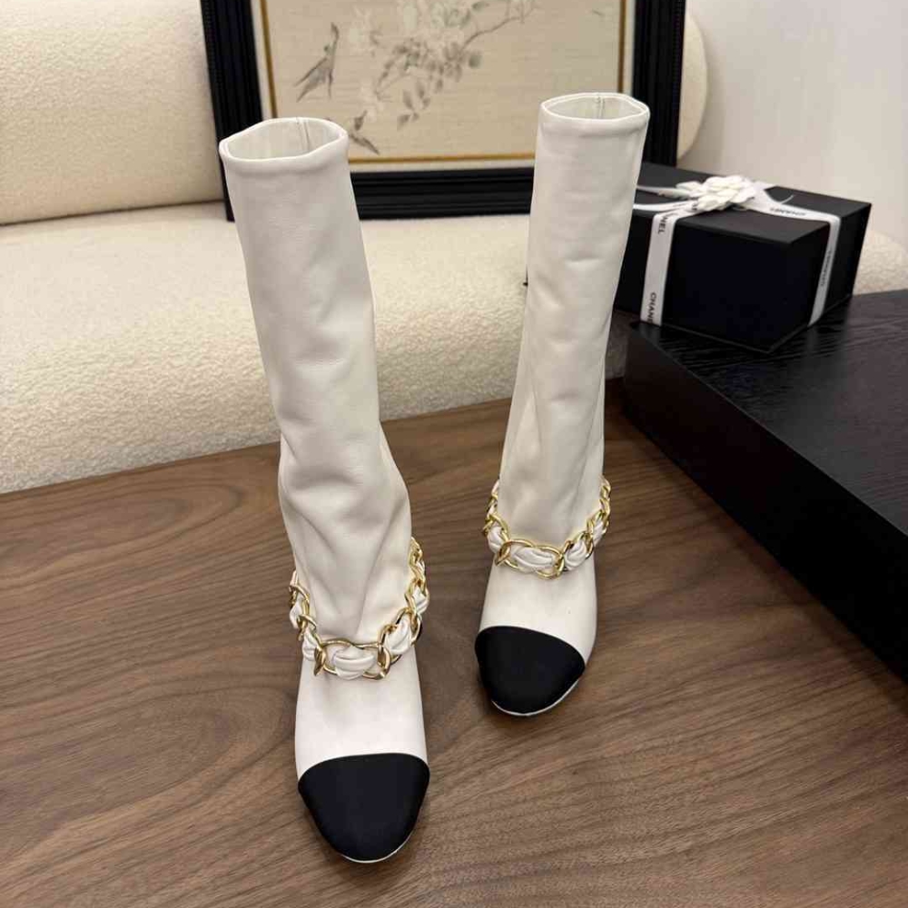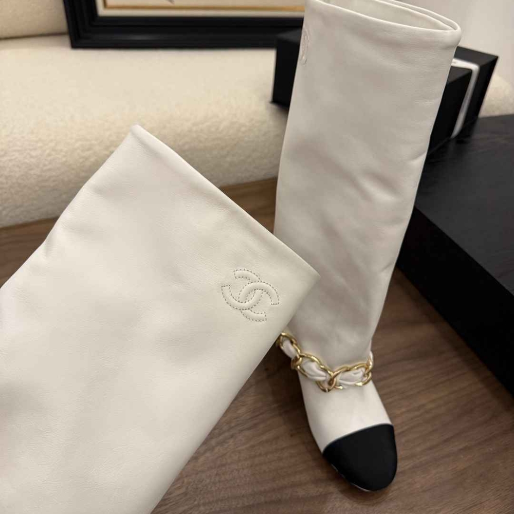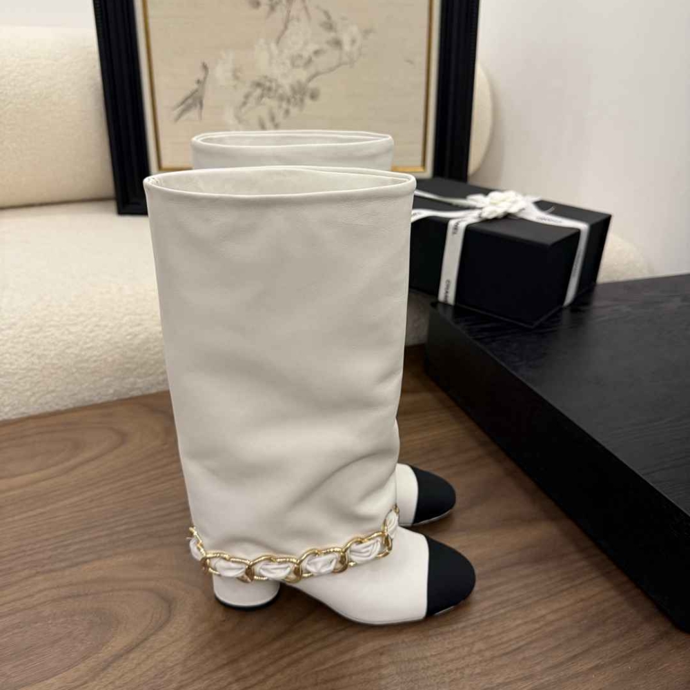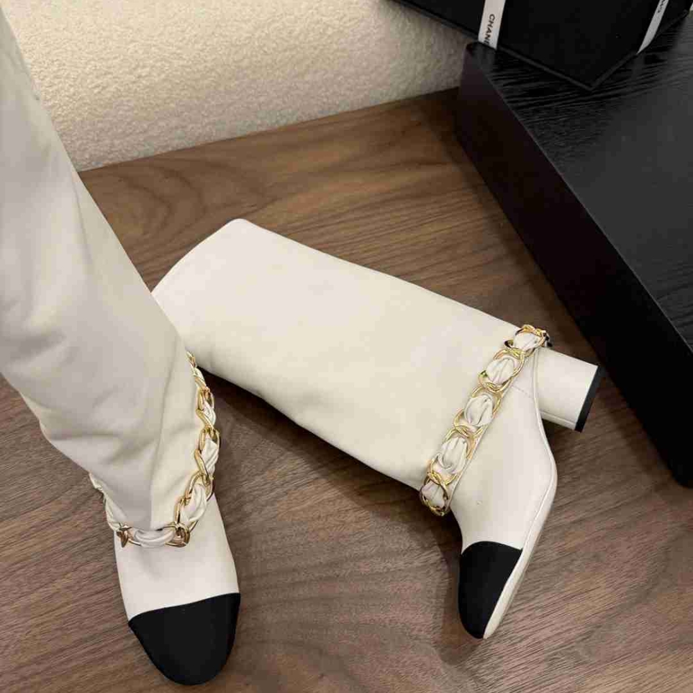 [SUPER VIP 1:1] CHANEL HIGH BOOTS LEATHER AND GROSGRAIN WHITE G46677 B21755 U3294