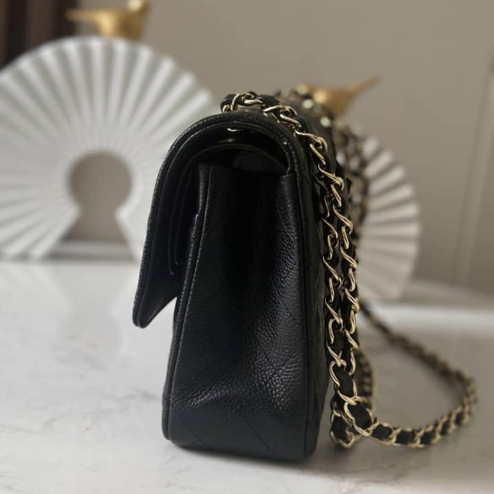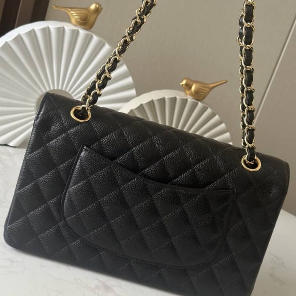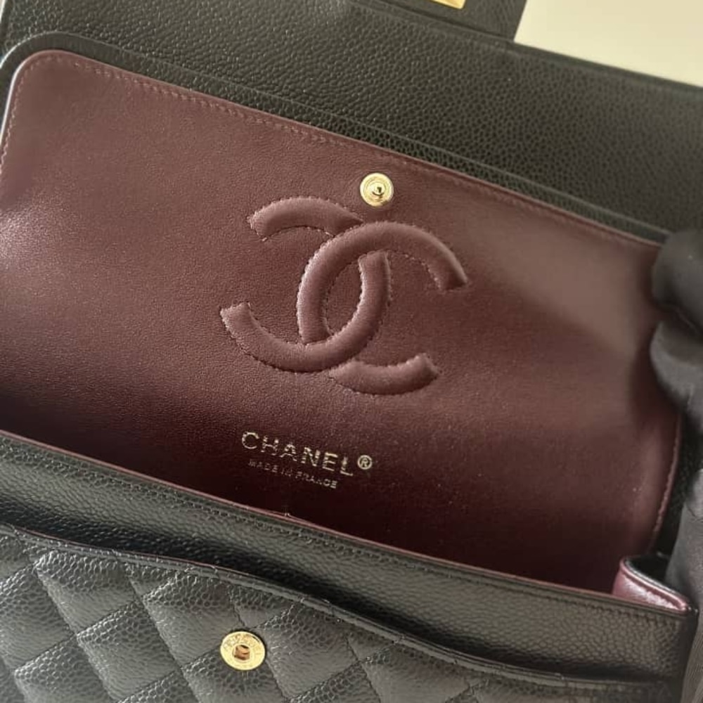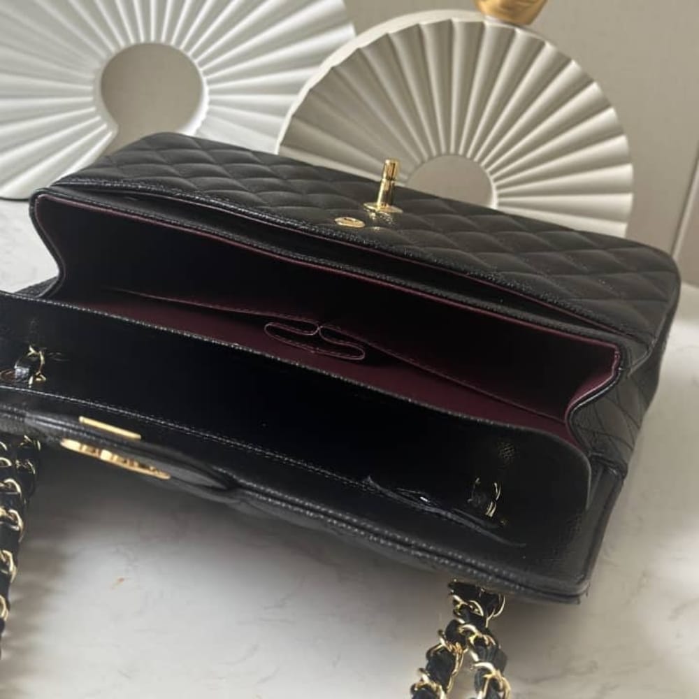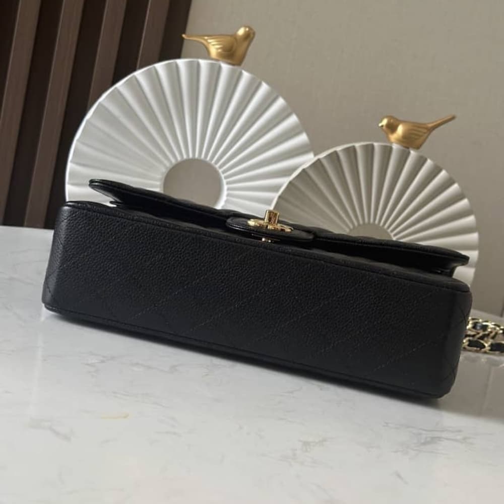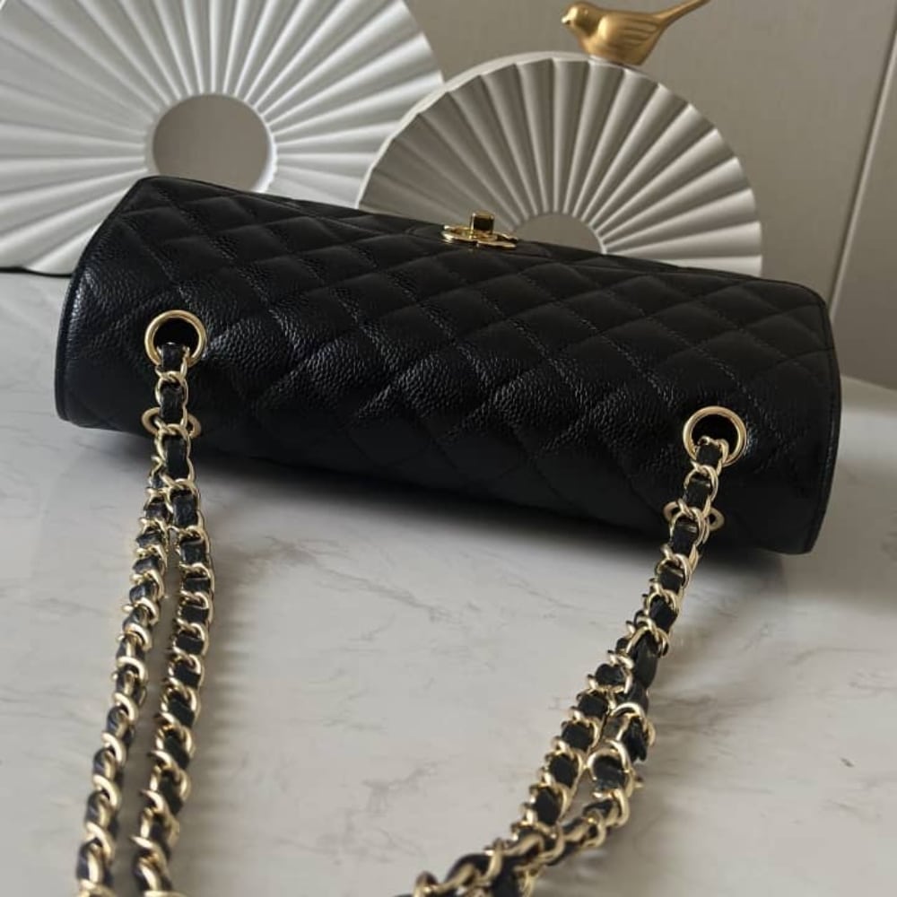 Chanel Medium Classic Handbag Grained & Gold-Tone Metal Black A01113 Y01864 C3906 / 25 cm
