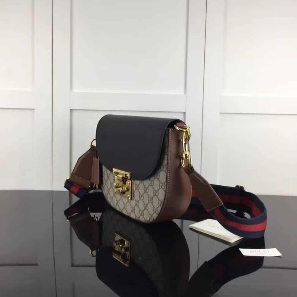 [SUPER VIP 1:1] GUCCI PADLOCK SIGNATURE LEATHER SHOULDER BAG BLACK AND BROWN 25CM 779805 K6RIG 9782