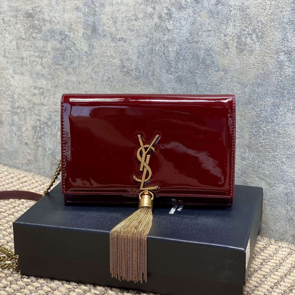 [SUPER VIP 1:1] SAINT LAURENT KATE TASSEL CHAIN WALLET BURGUNDY 19CM 742833BMIIW6413