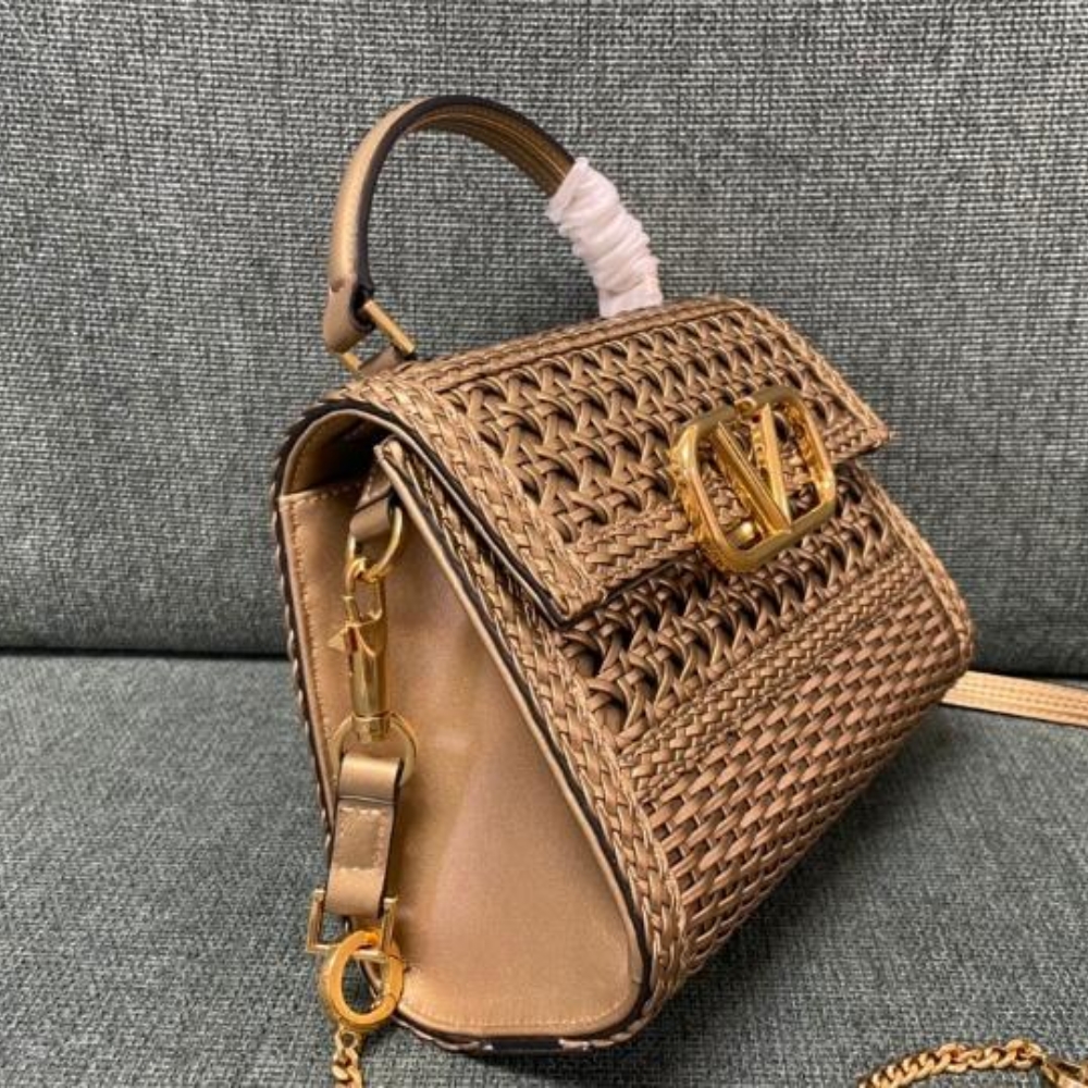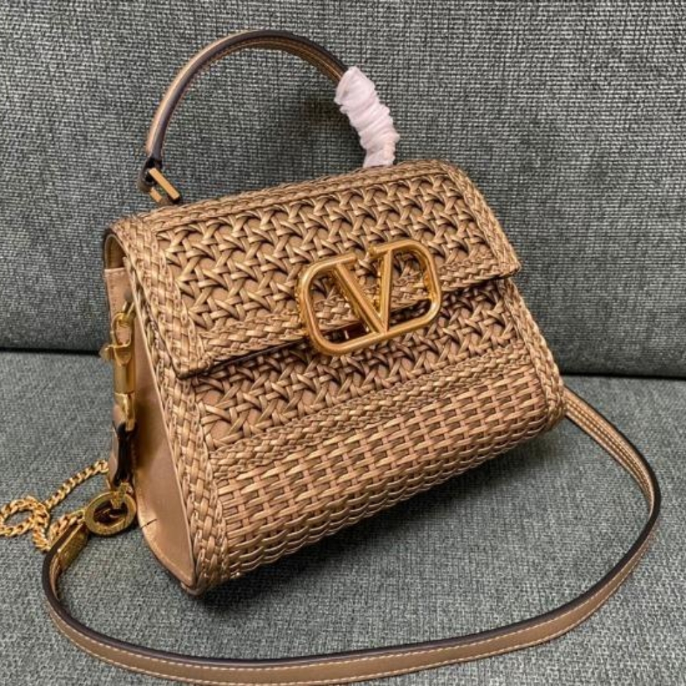[Super Vip 1:1] Valentino VSling Beige Woven Leather Small Top Handle Bag / 22 x 17 x 9 cm / 8.7 x 6.7 x 3.5 inches