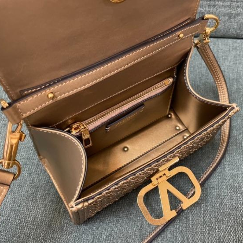 [Super Vip 1:1] Valentino VSling Beige Woven Leather Small Top Handle Bag